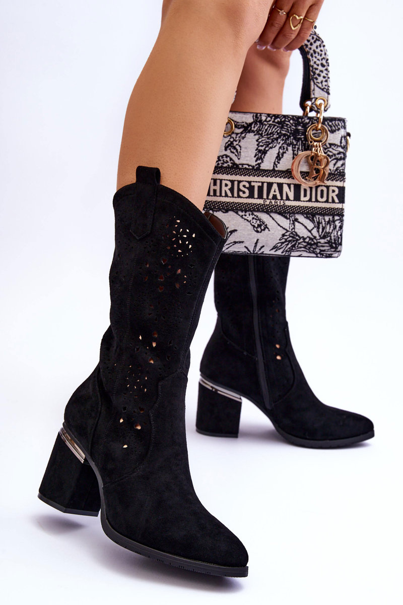 Kozaki Damskie Zamsz Ażur Czarne Adelia