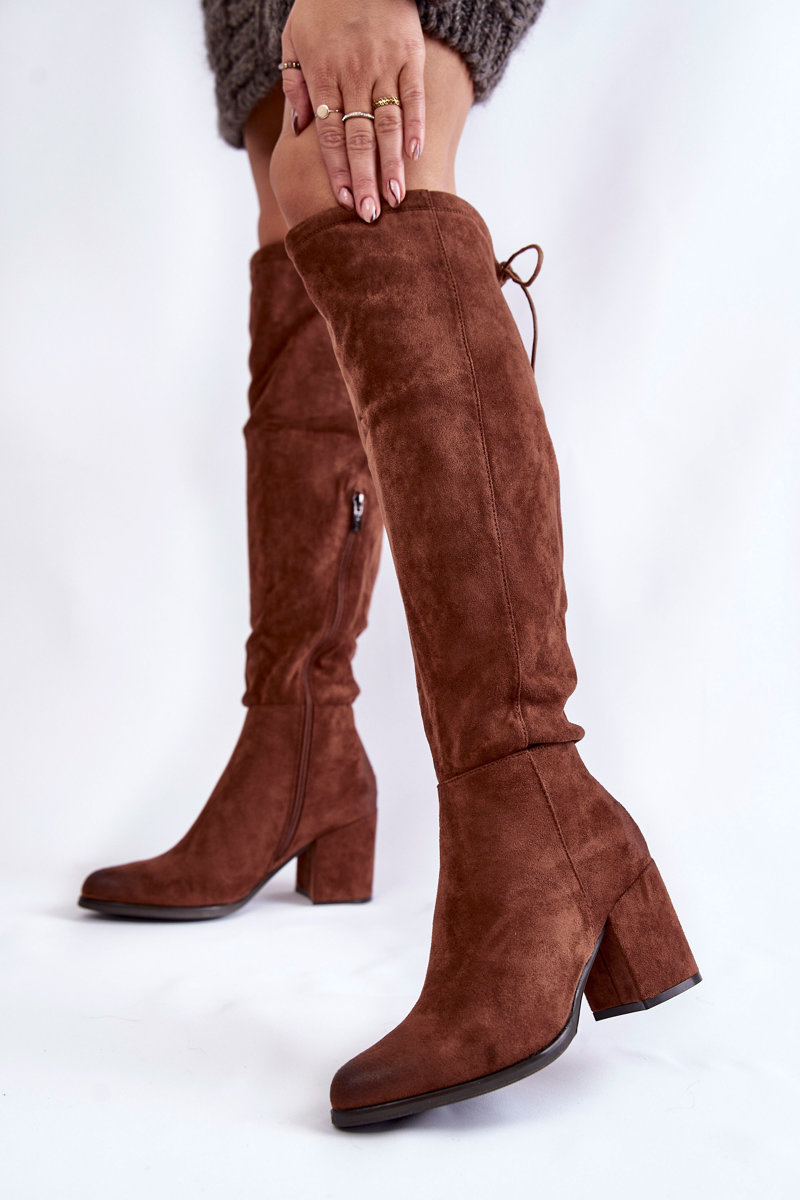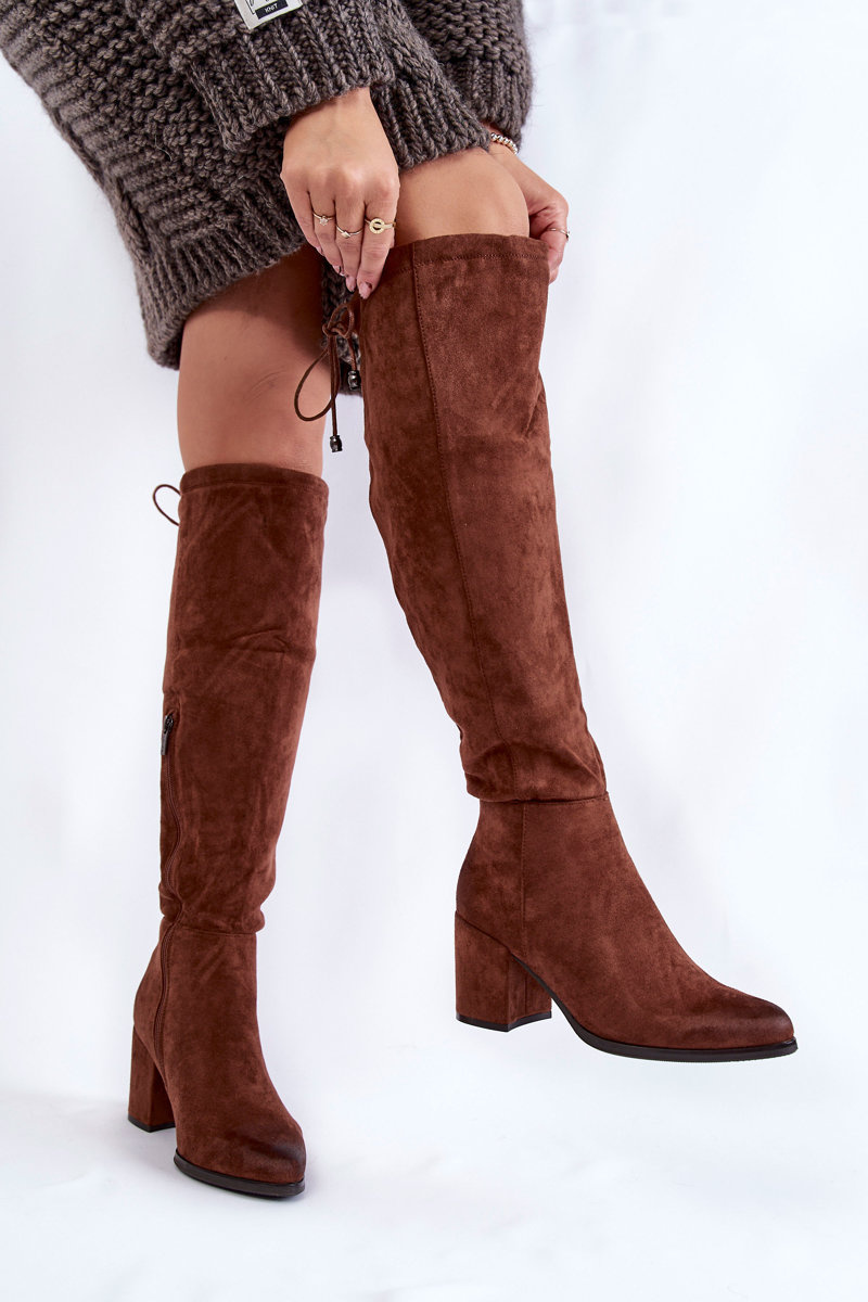 Kozaki Damskie Zamsz Za Kolano Ciemnobrązowe La.Fi 270056FX-SU