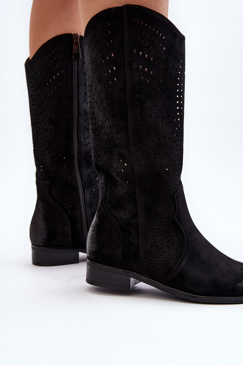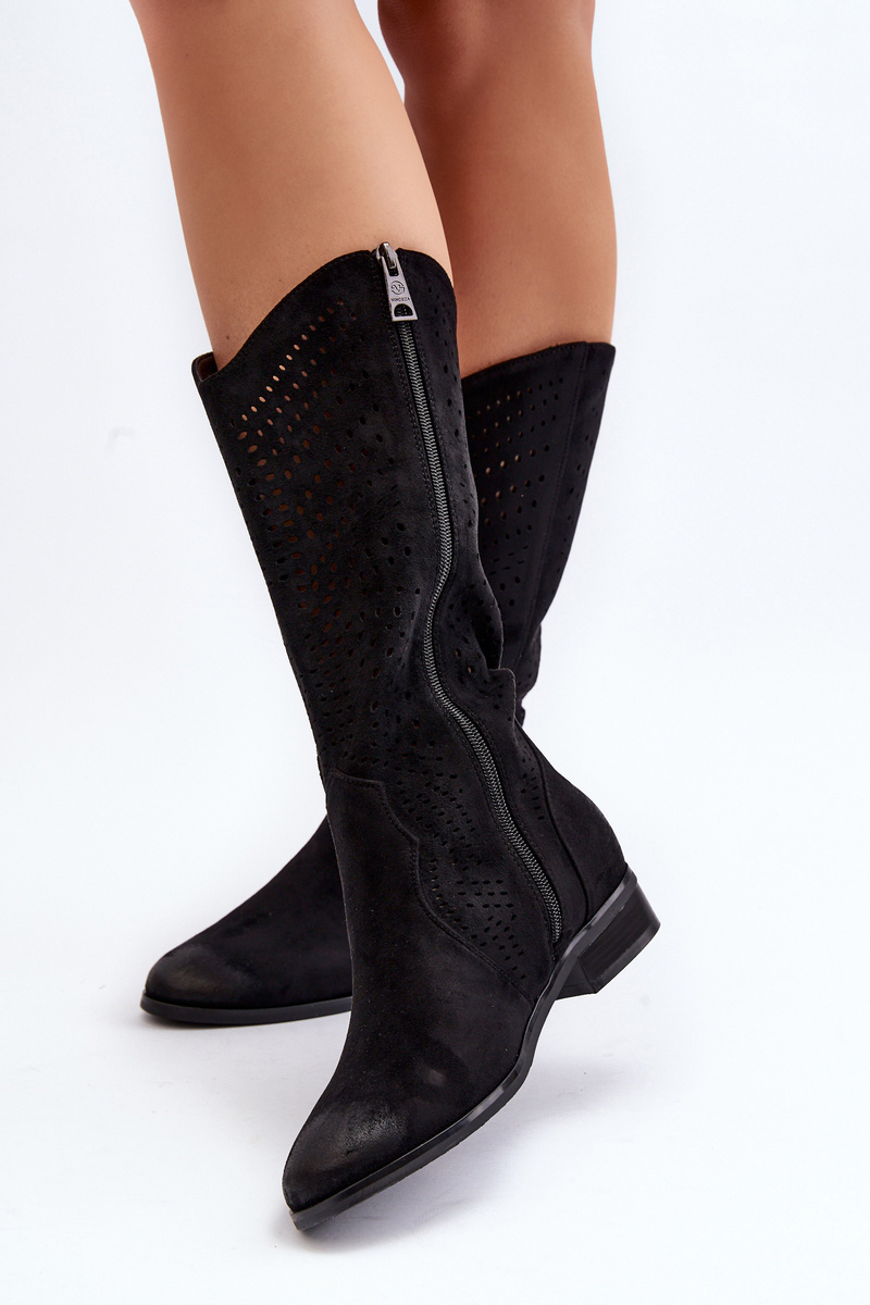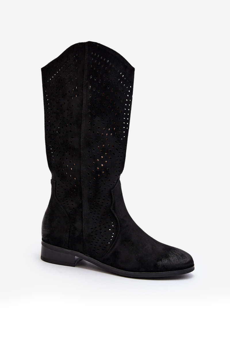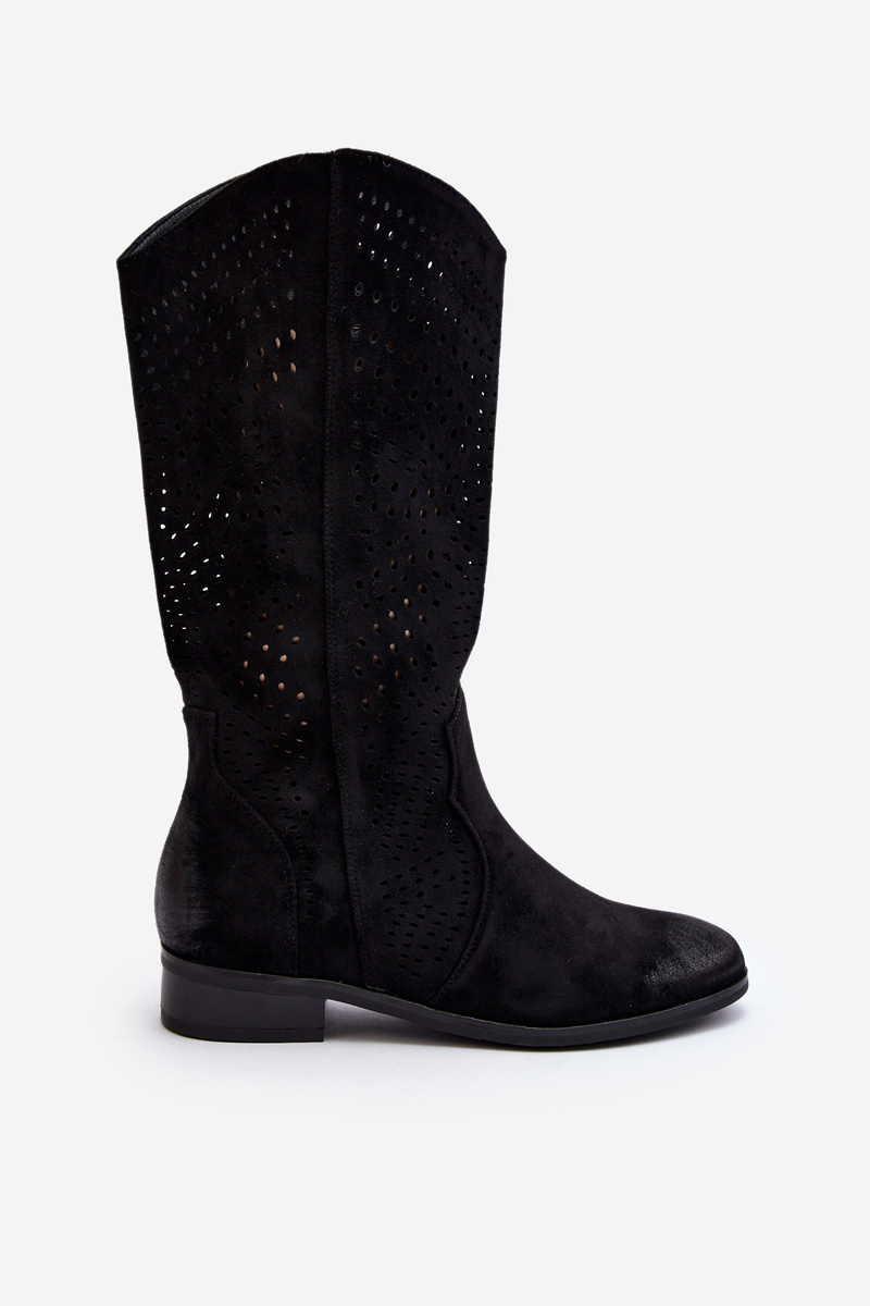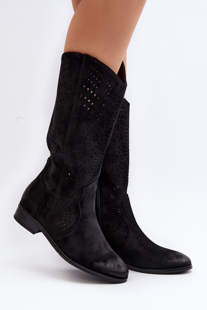 Kozaki Do Połowy Łydki Ażurowe Czarne Kleorelia 58237