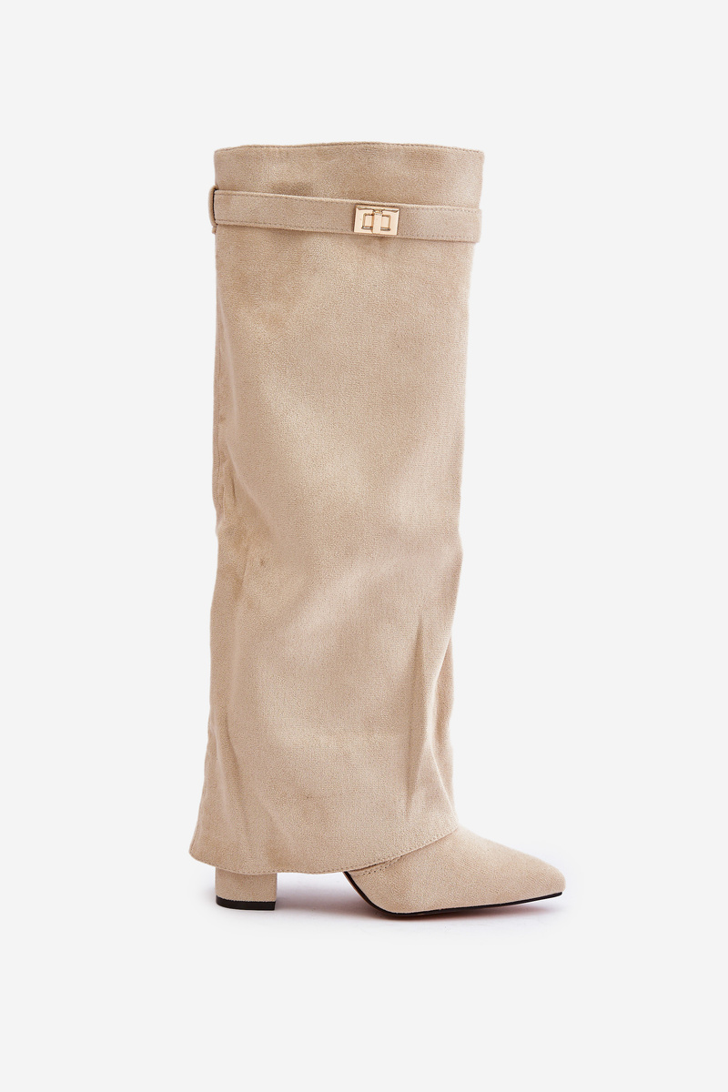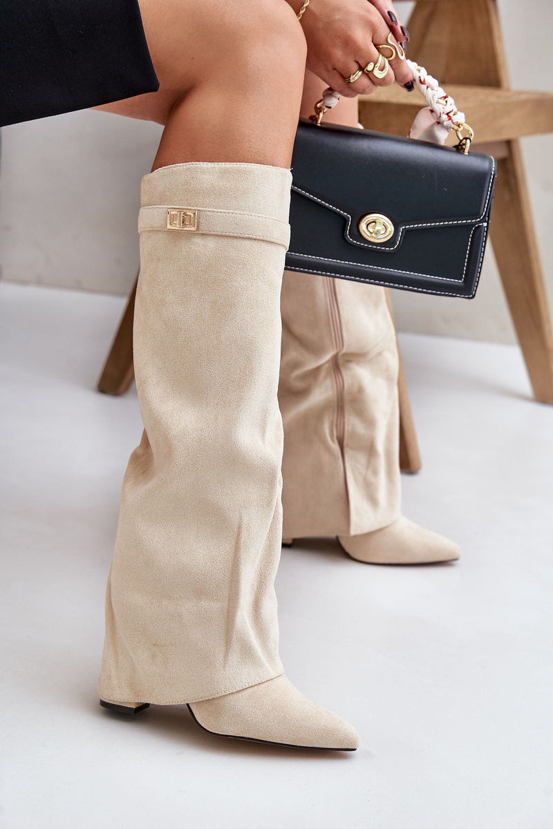 Kozaki Eko Zamszowe Obcas Słupek Na Zamek Ocieplane Wywinięta Cholewka Jasnobeżowe Urelli