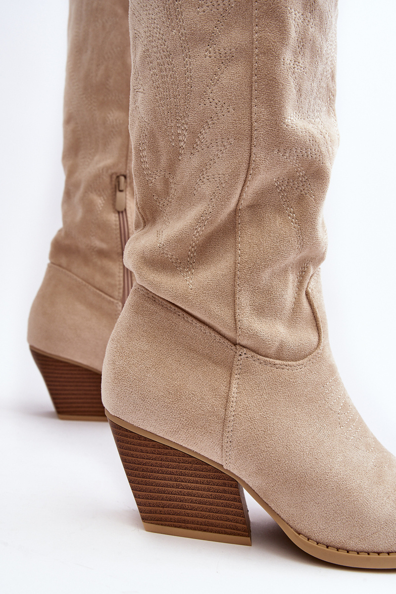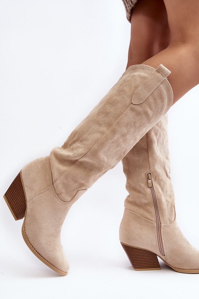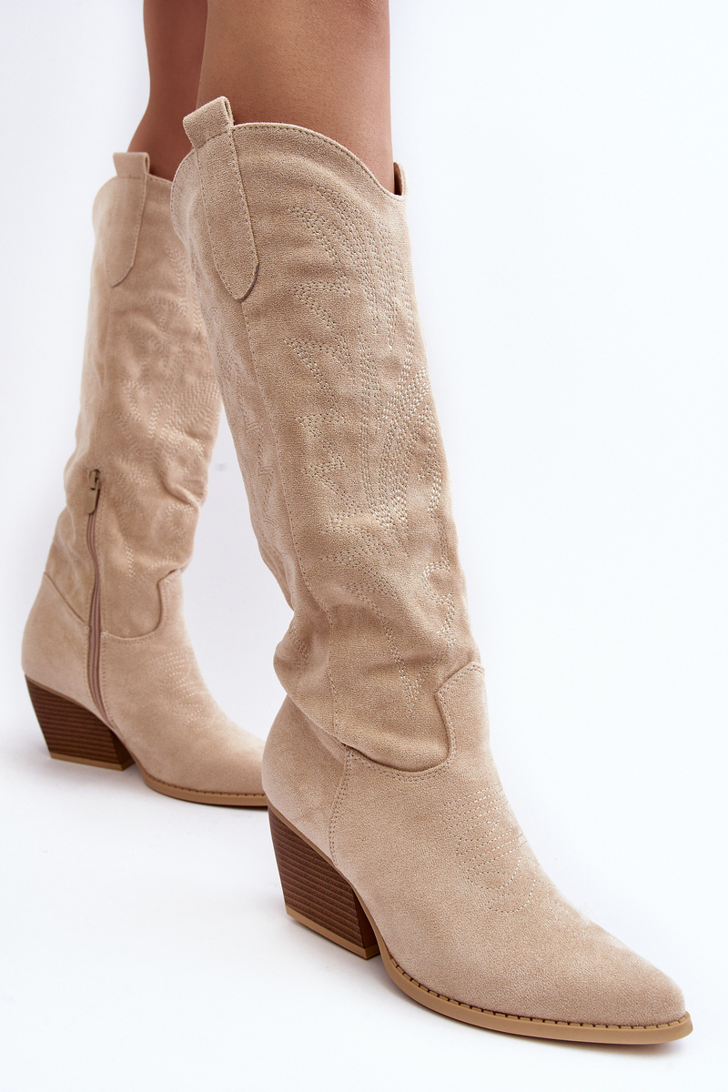 Kozaki Kowbojki Damskie Słupek Jasnobeżowe Sloana WZ688-12