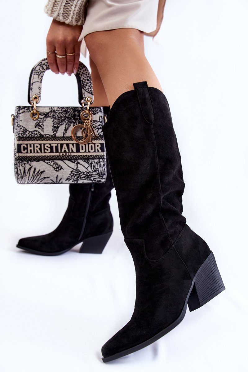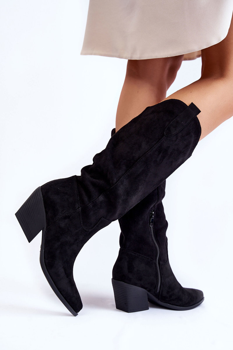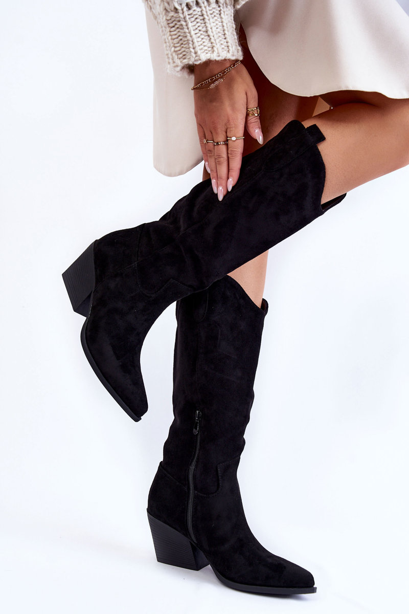 Kozaki Kowbojki Damskie Zamsz Czarne Alaina