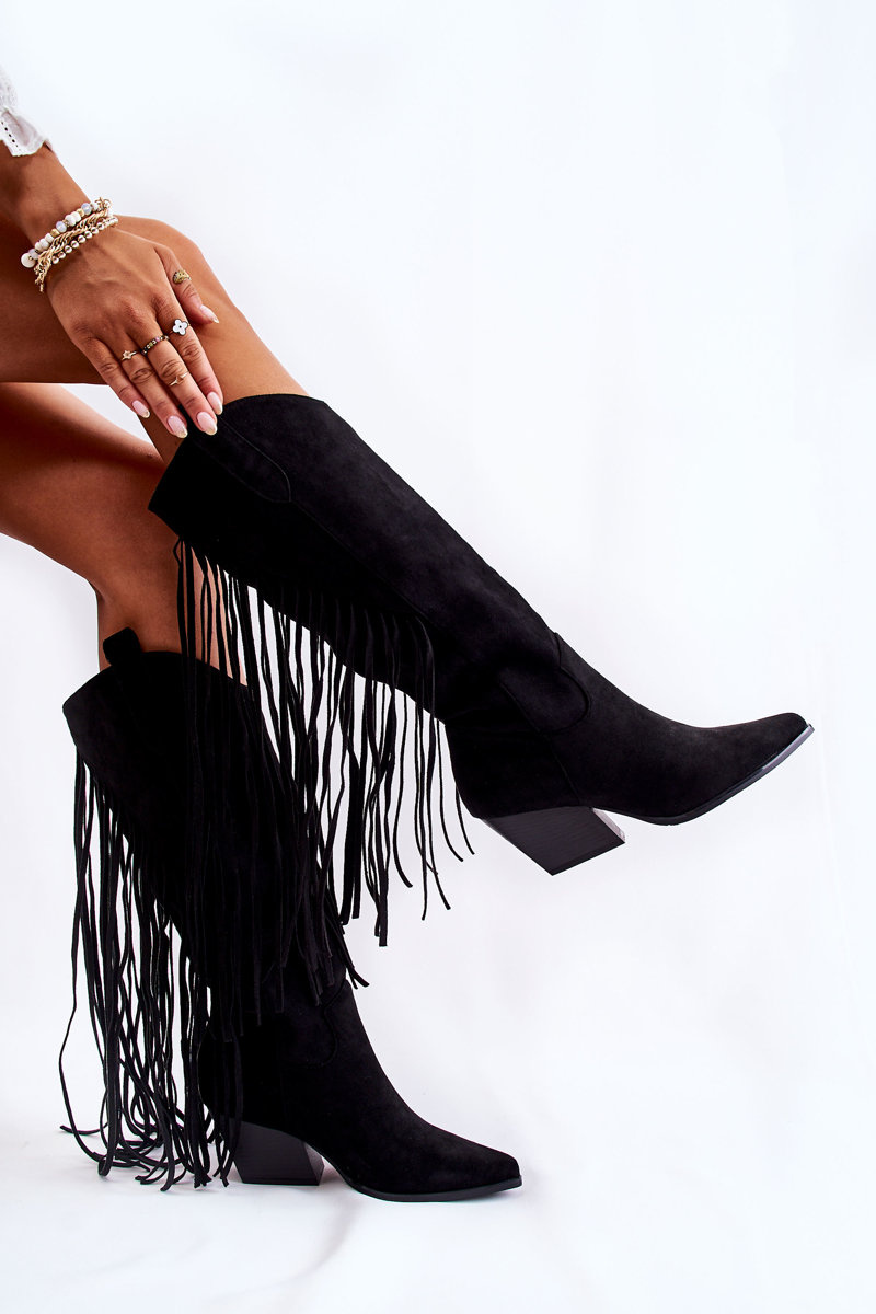 Opinie o Kozaki Kowbojki Damskie Zamsz Frędzle Czarne Simplo
