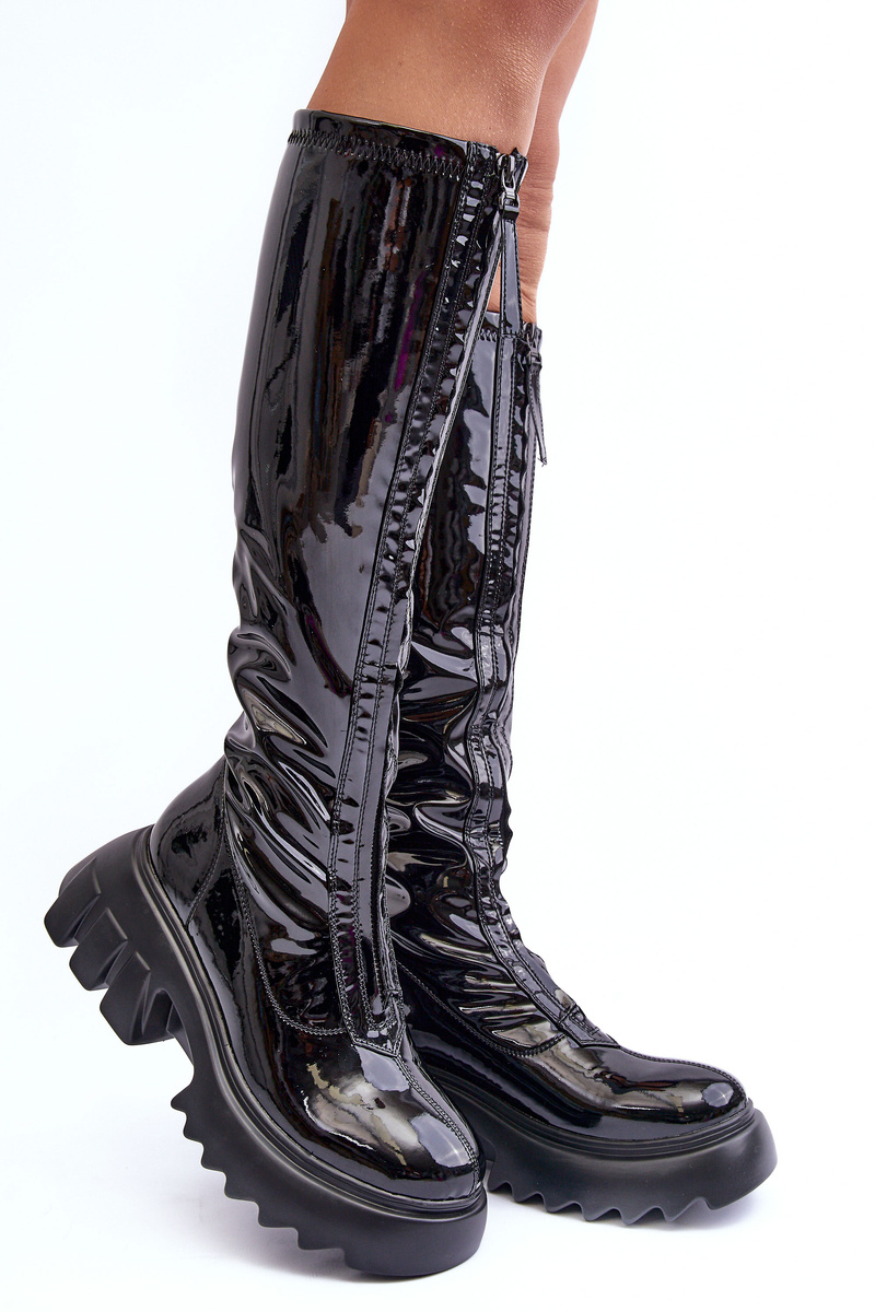Kozaki Lakierowane Masywna Platforma Czarne Ringo JJ51P
