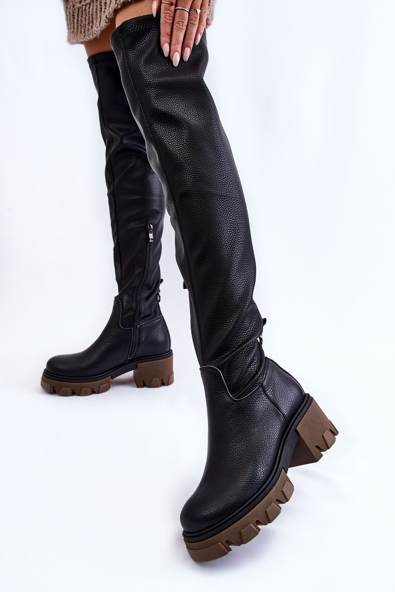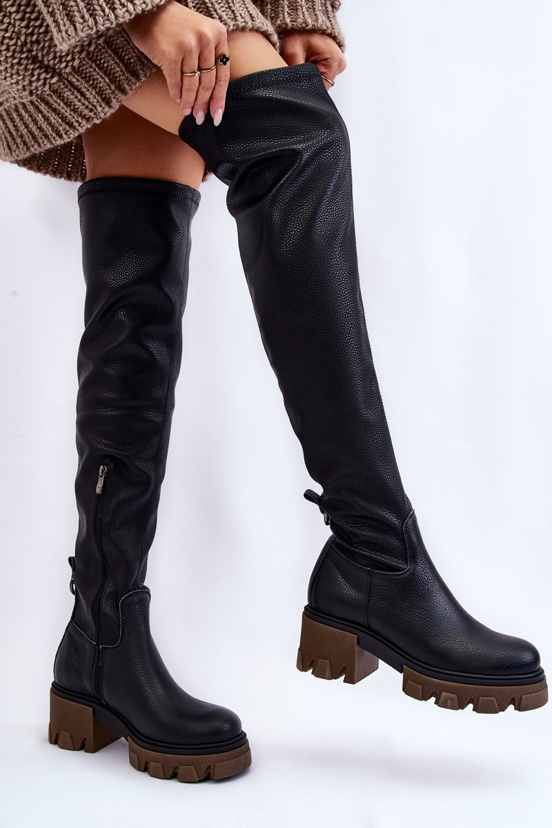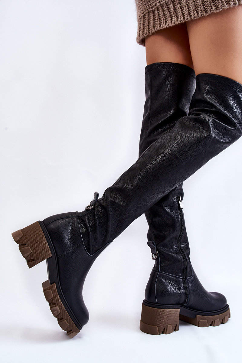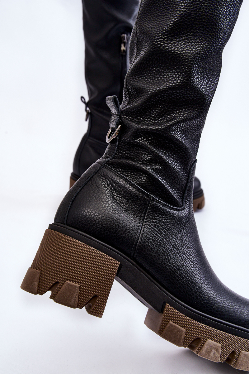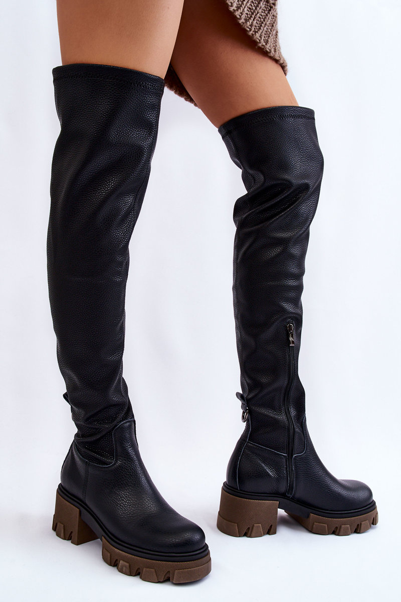 Kozaki Modne Skóra Damskie Za Kolano Czarne Lemar Venise