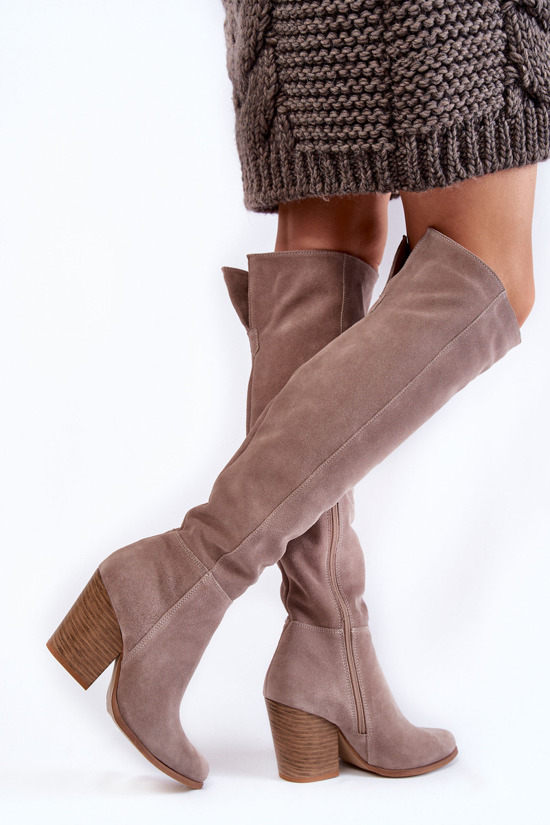 Kozaki Muszkieterki Damskie Zamsz Szare Lewski 2833