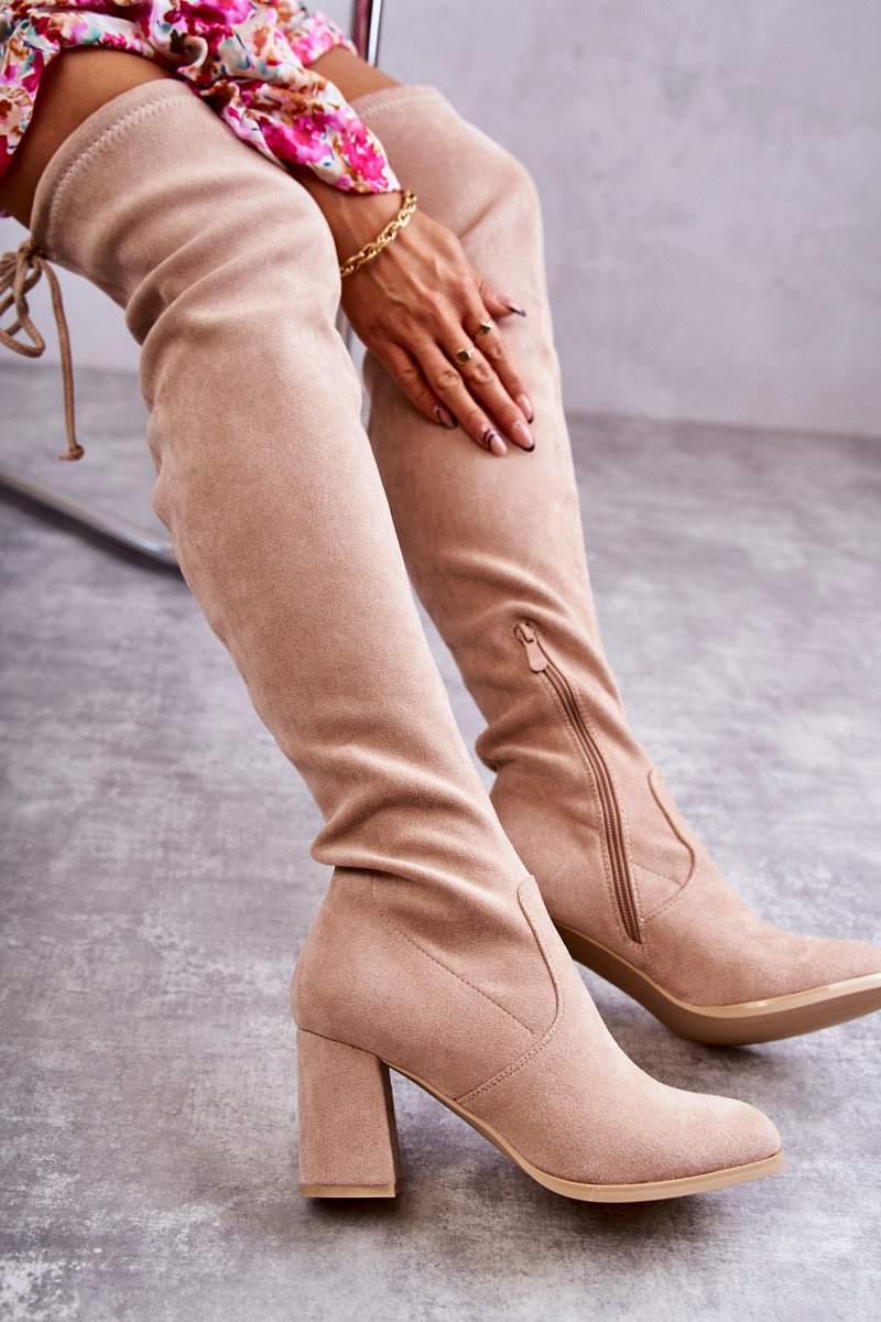 Kozaki Muszkieterki Klasyczne Zamsz Beżowe Clarissa