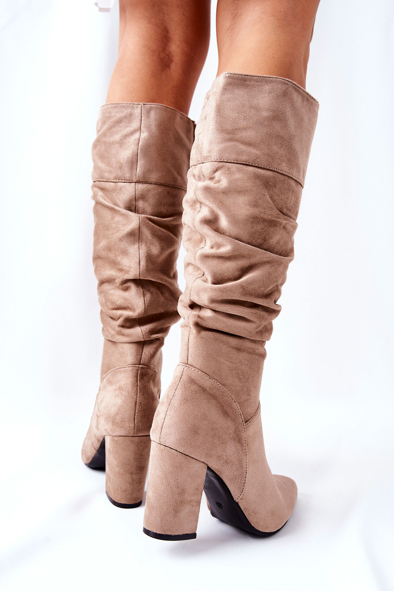 Kozaki Na Słupku Zamszowe Beżowe Dorelle