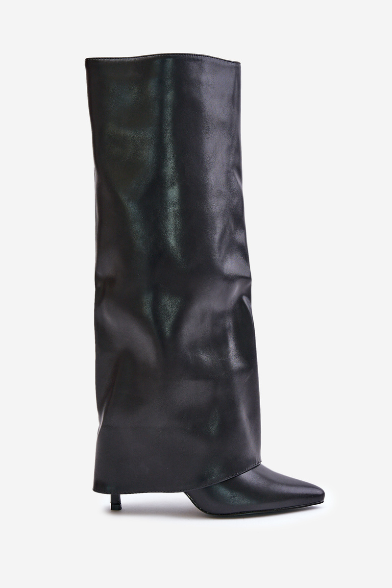 Kozaki Na Szpilce Wywinięta Cholewka Zamek Ocieplane Czarne Bellinna