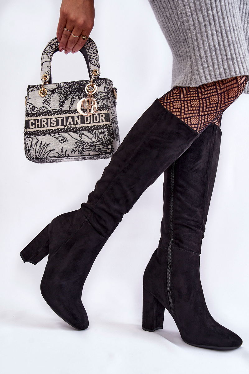 Kozaki Ocieplane Zamsz Słupek Czarne Obsessive