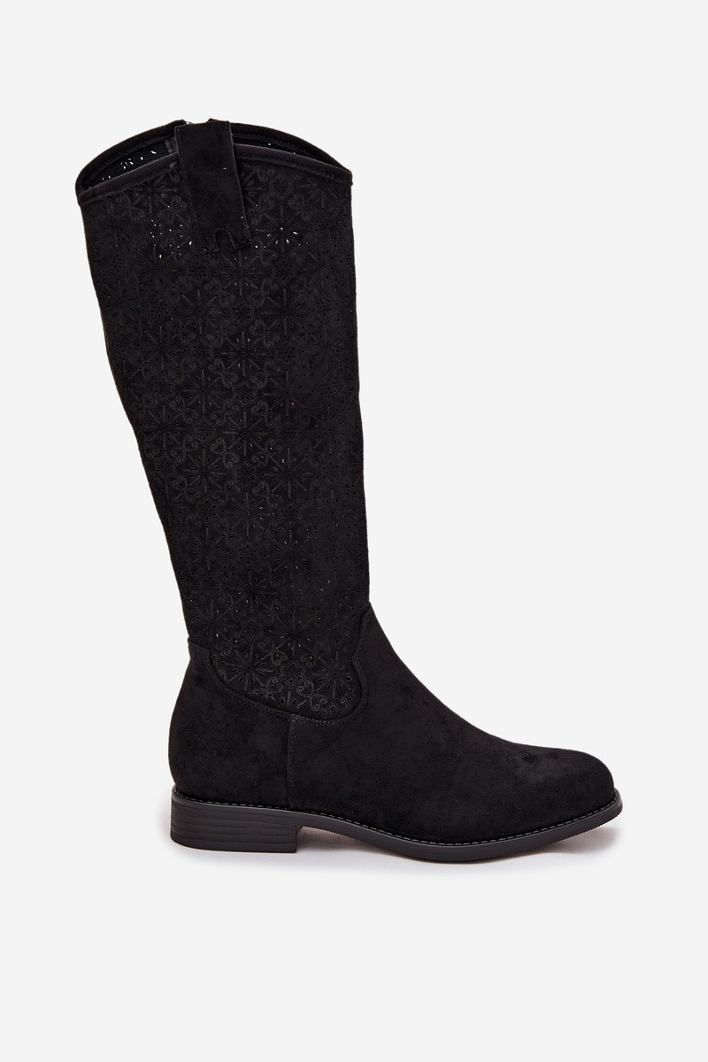 Kozaki Płaski Obcas Ażurowa Cholewka Czarne S.Barski HY51-860