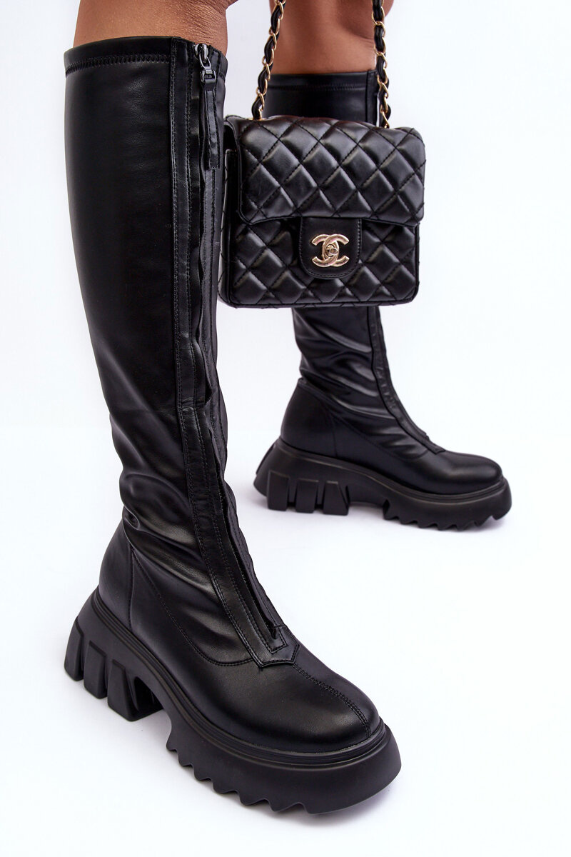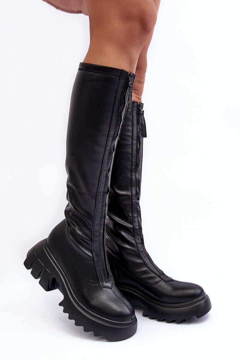 Kozaki Skóra Masywna Platforma Czarne Ringo JJ49P