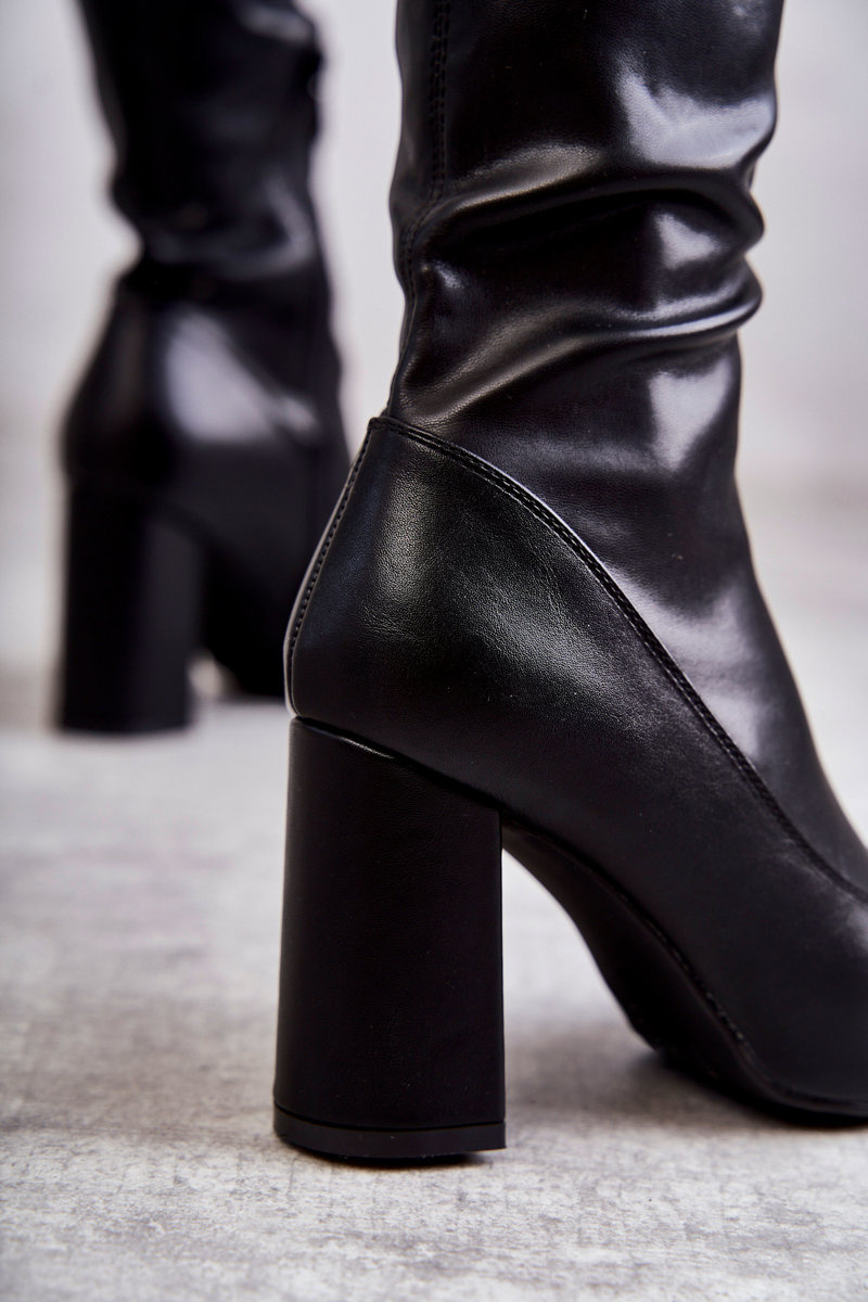 Kozaki Skóra Wysokie Obcas Czarne Casto