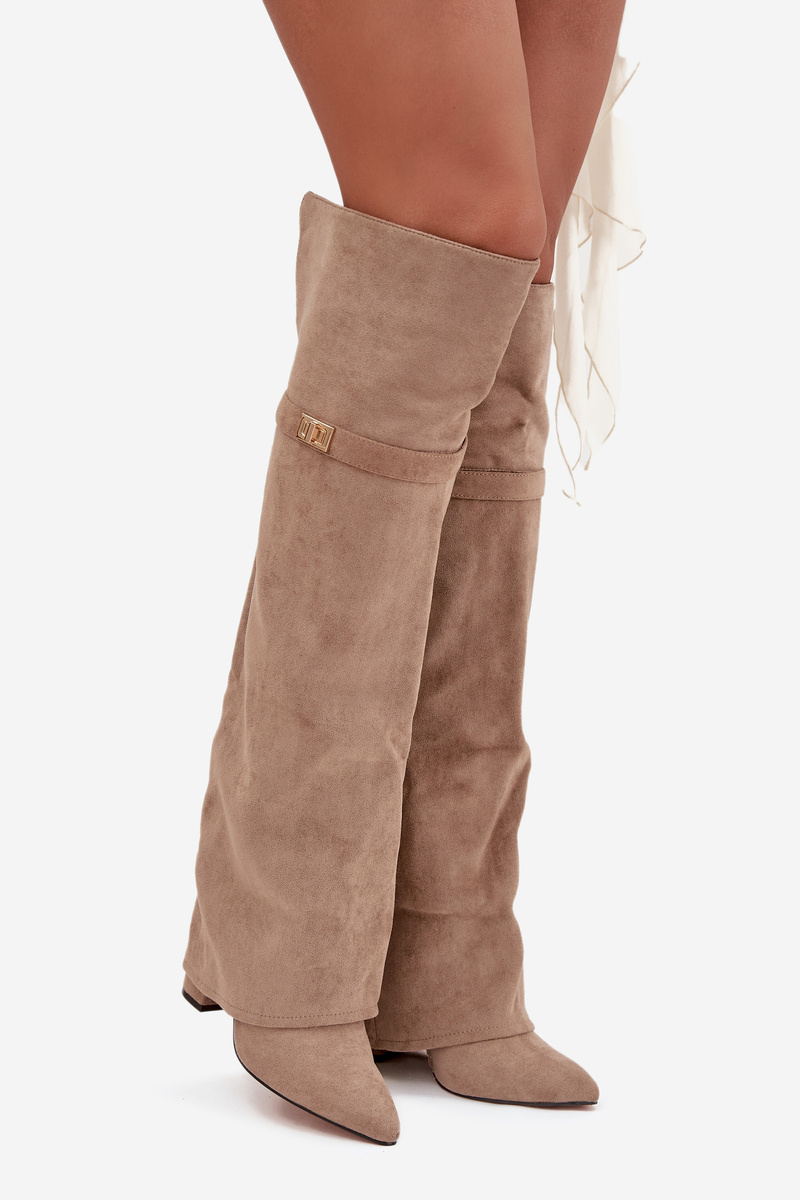 Kozaki Wywinięta Cholewka Za Kolano Obcas Słupek Ocieplane Beżowe Serelle