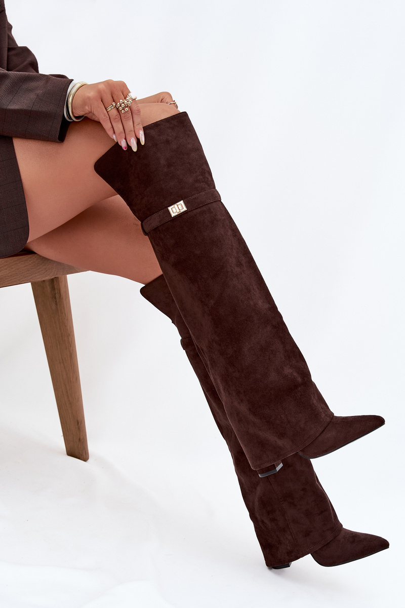 Kozaki Wywinięta Cholewka Za Kolano Obcas Słupek Ocieplane Czekoladowe Serelle