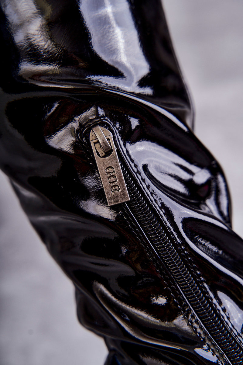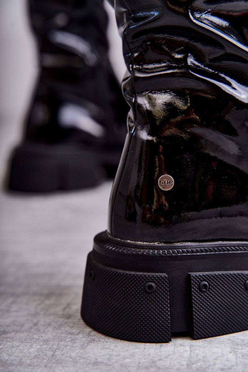 Kozaki Za Kolano Lakier Płaski Obcas Czarne GOE KK2N4023
