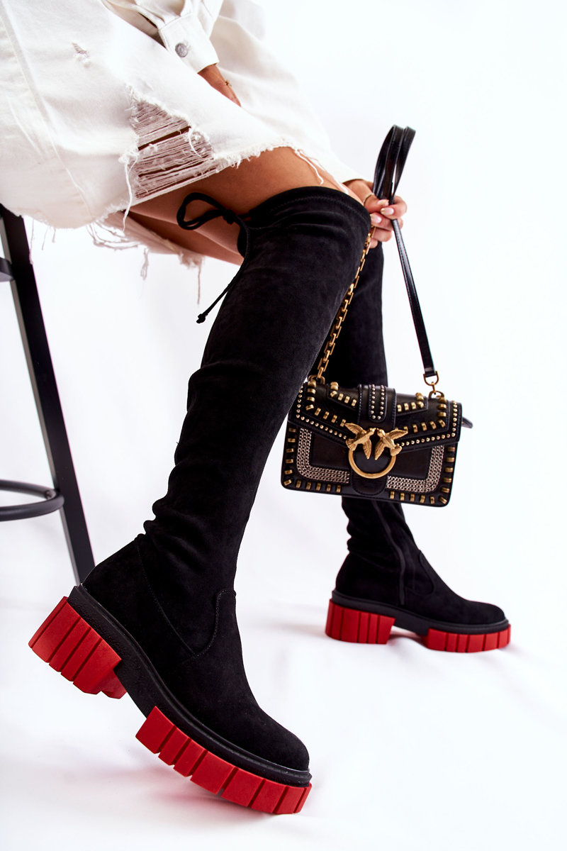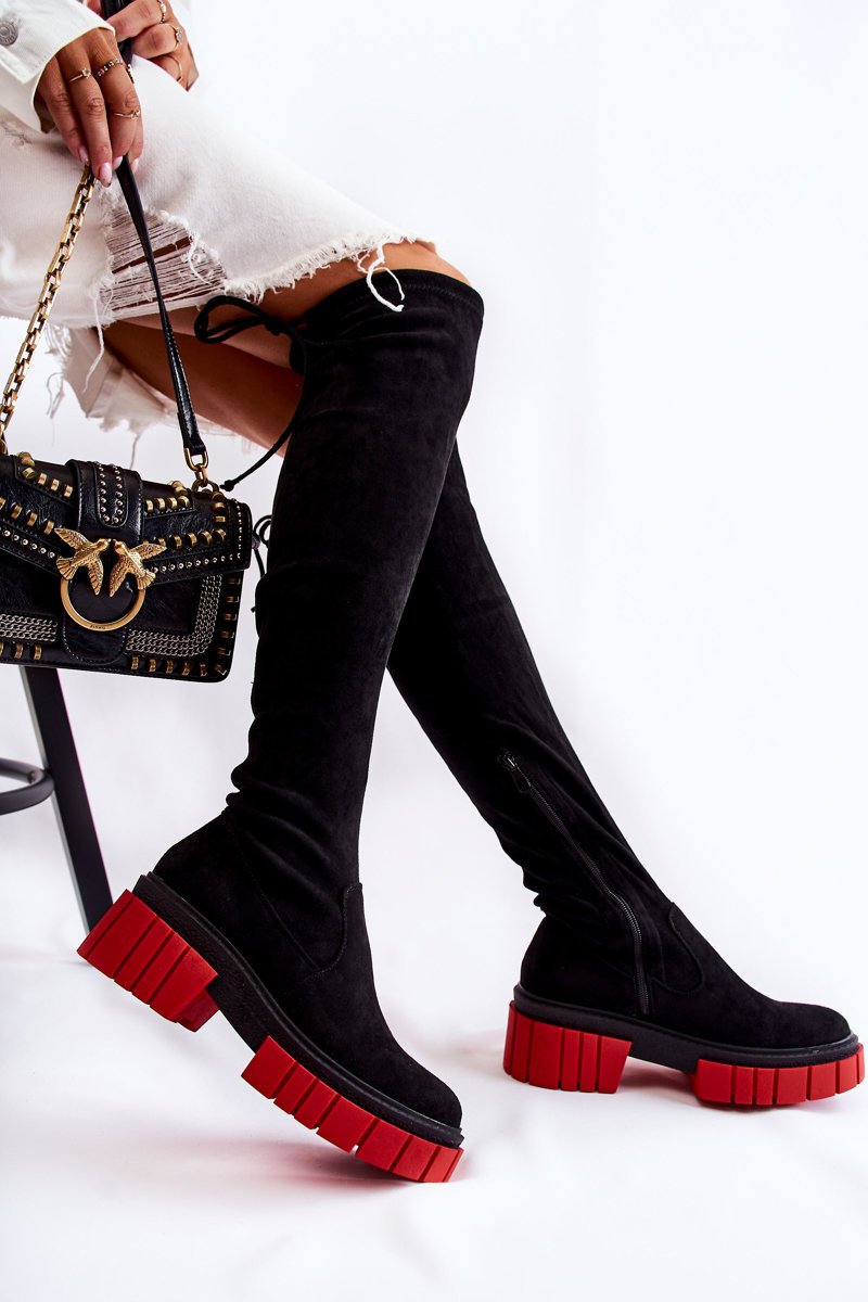 Kozaki Za kolano Zamsz Damskie Czarno-Czerwone Cheera