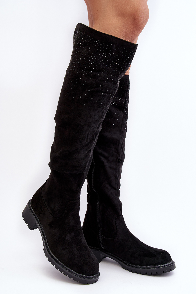 Kozaki Zdobione Damskie Za Kolano Płaski Obcas Czarne Cintya HD055-95