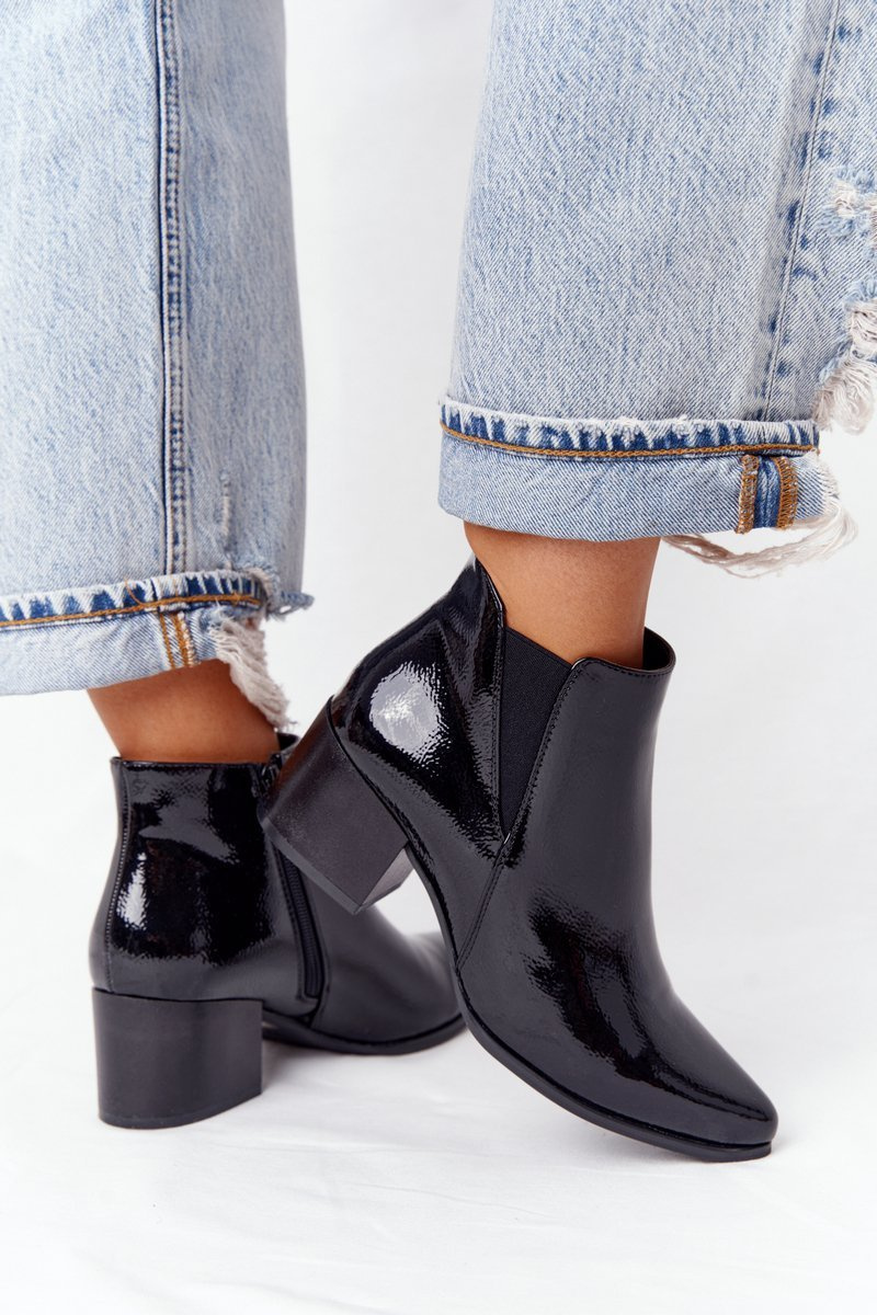 Lakierowane Botki Na Obcasie Sergio Leone BT153 Czarne