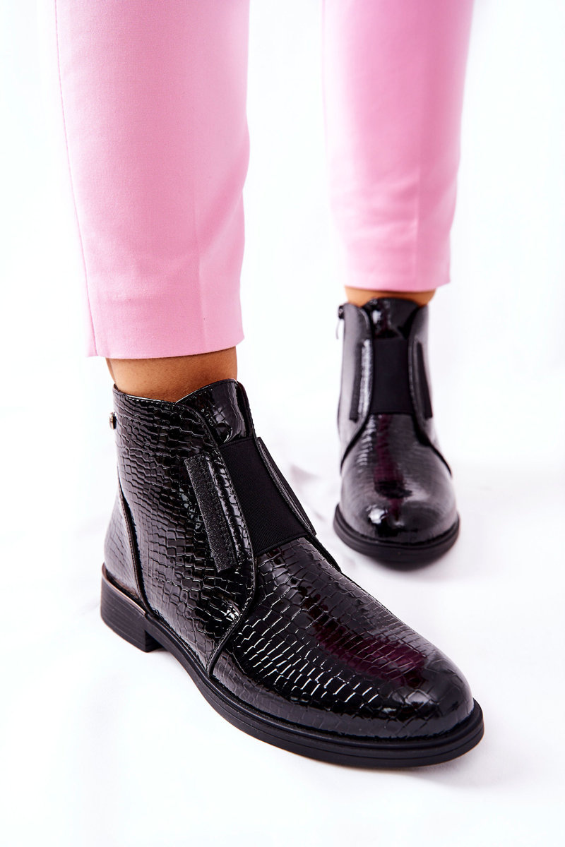 Lakierowane Botki Na Obcasie Sergio Leone BT400 Czarne