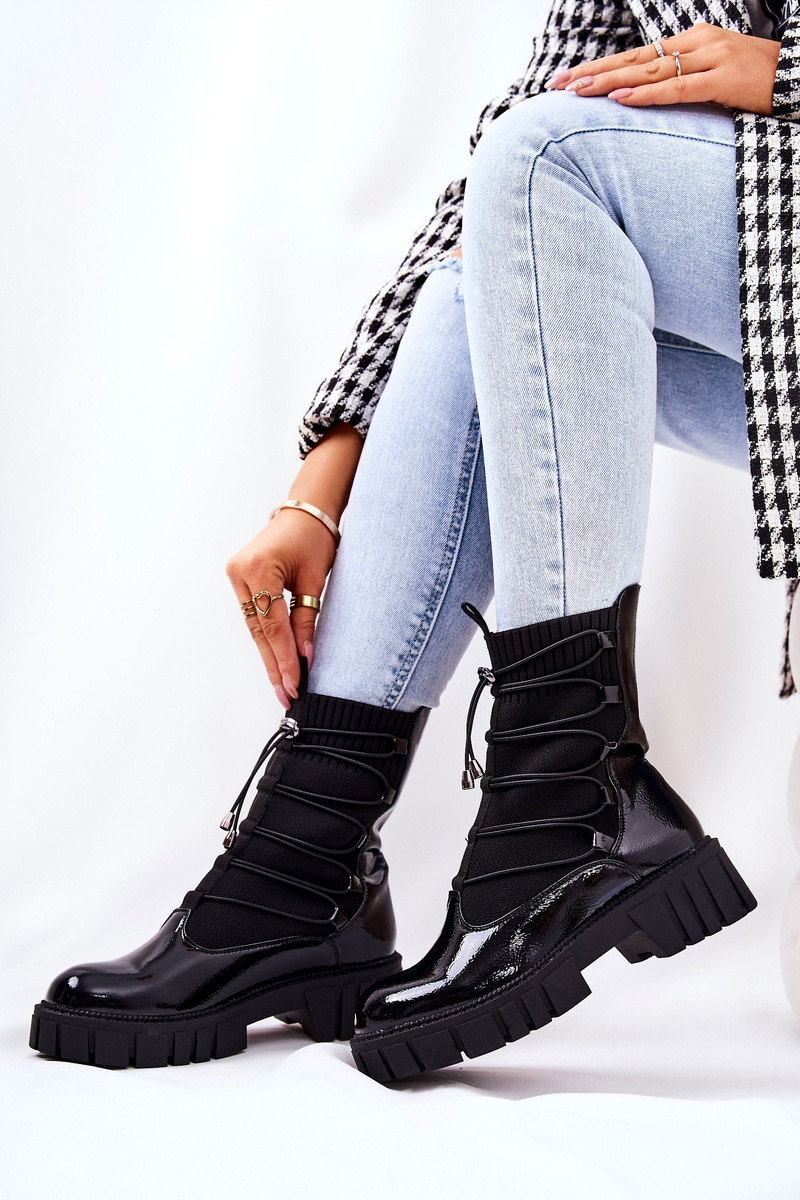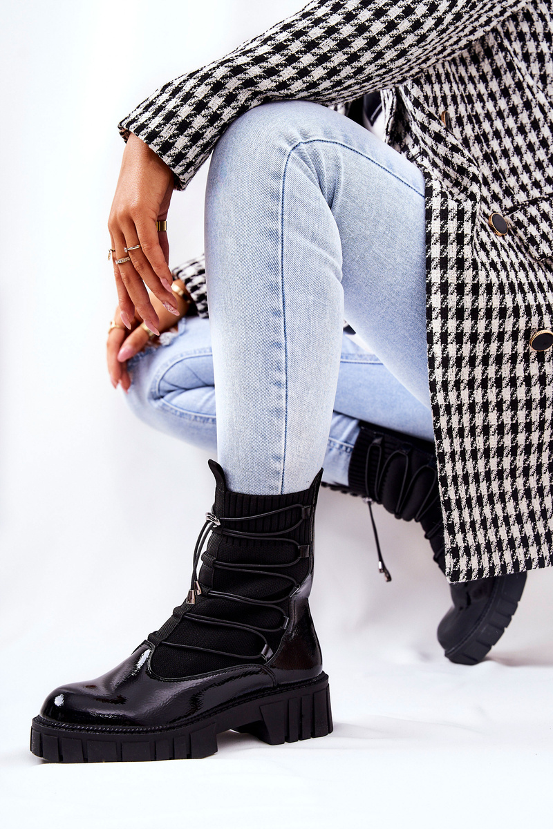 Lakierowane Botki Workery Ze Skarpetą Czarne Connor