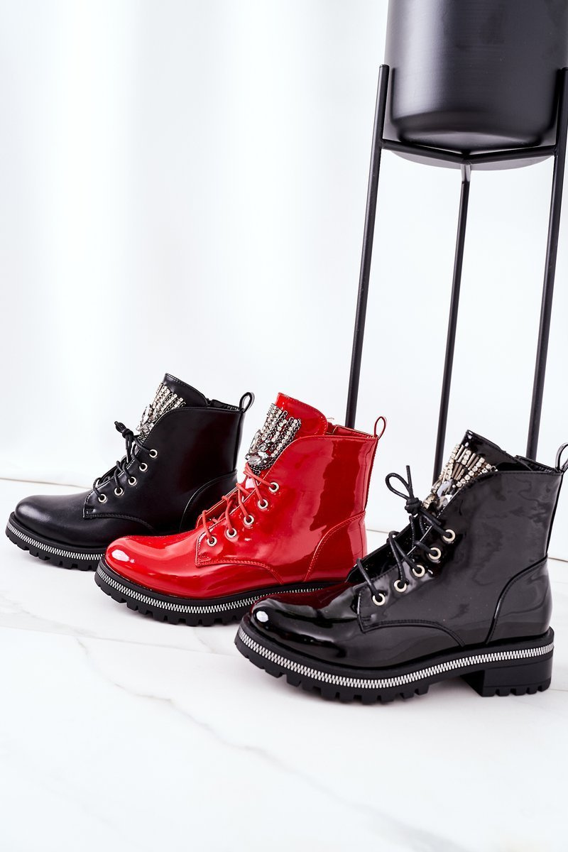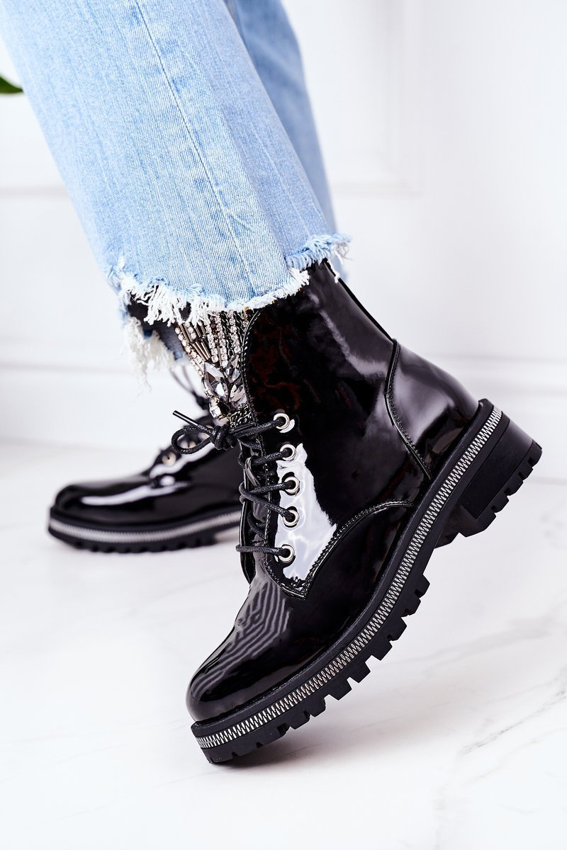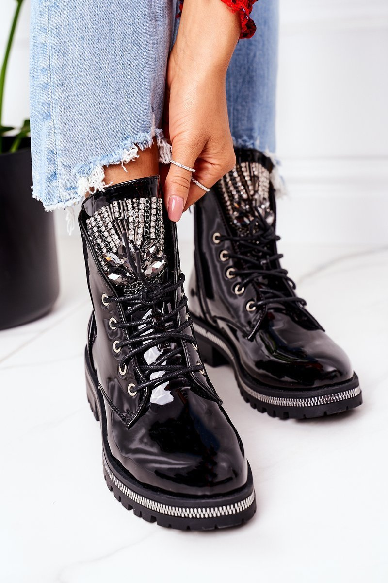 Lakierowane Ocieplane Workery Z Cyrkoniami Czarne Attention