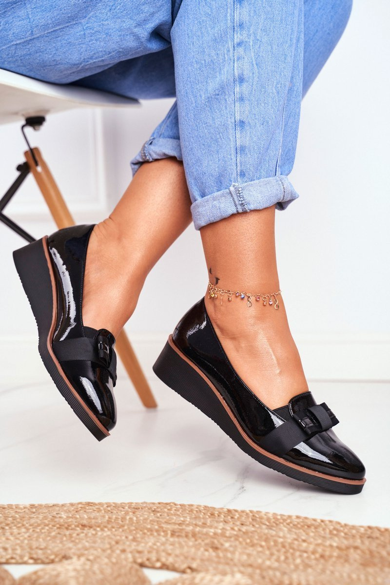 Lakierowane Półbuty Na Koturnie VINCEZA 22-10446 Czarne