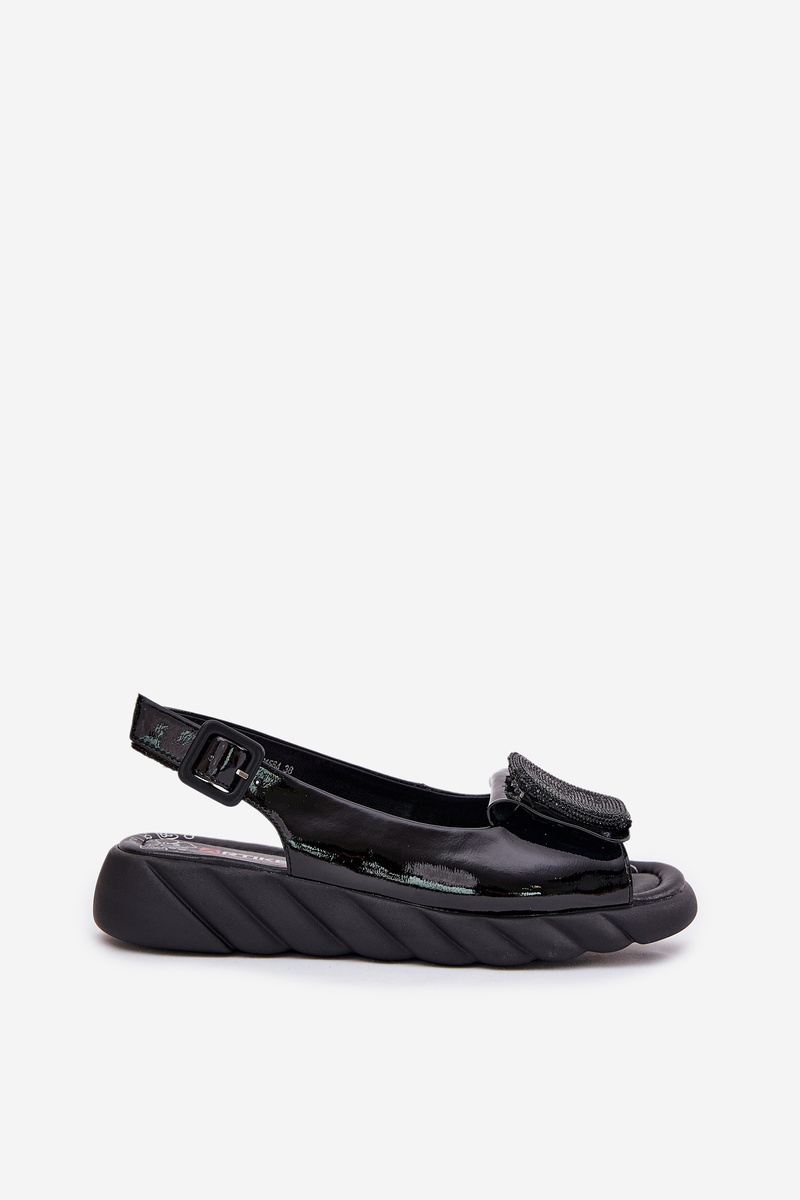 Lakierowane Sandały Na Koturnie Skóra Naturalna Ozdoba Czarne Artiker 56C1564