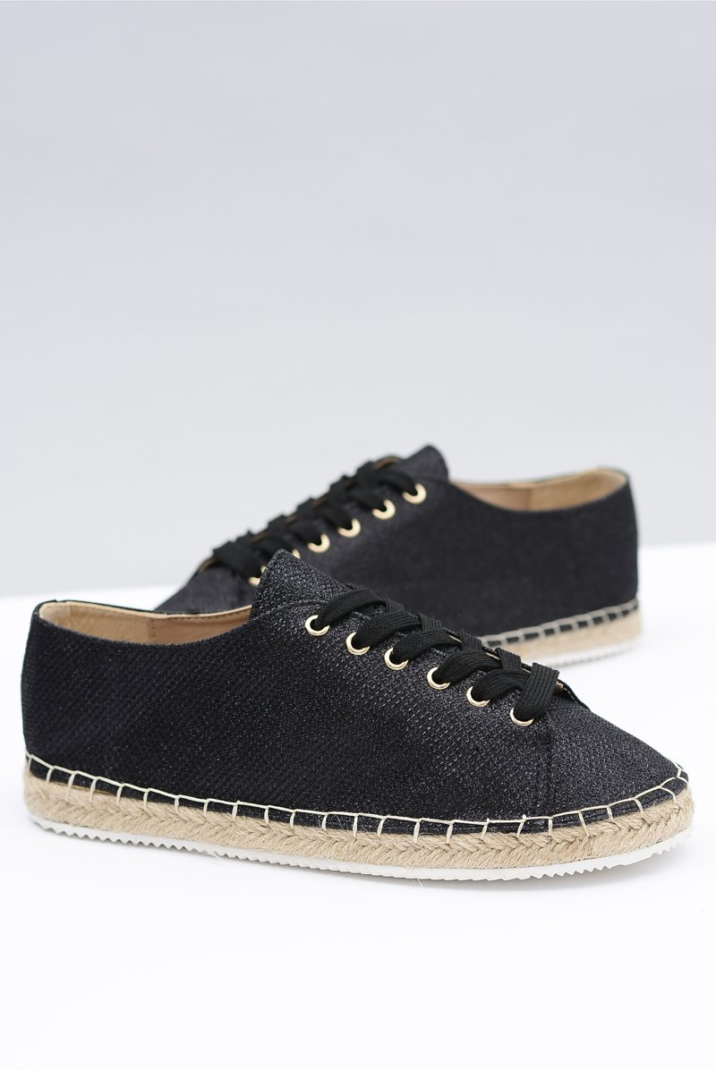 Lu Boo | Czarne Brokatowe Lniane Espadryle Fairy