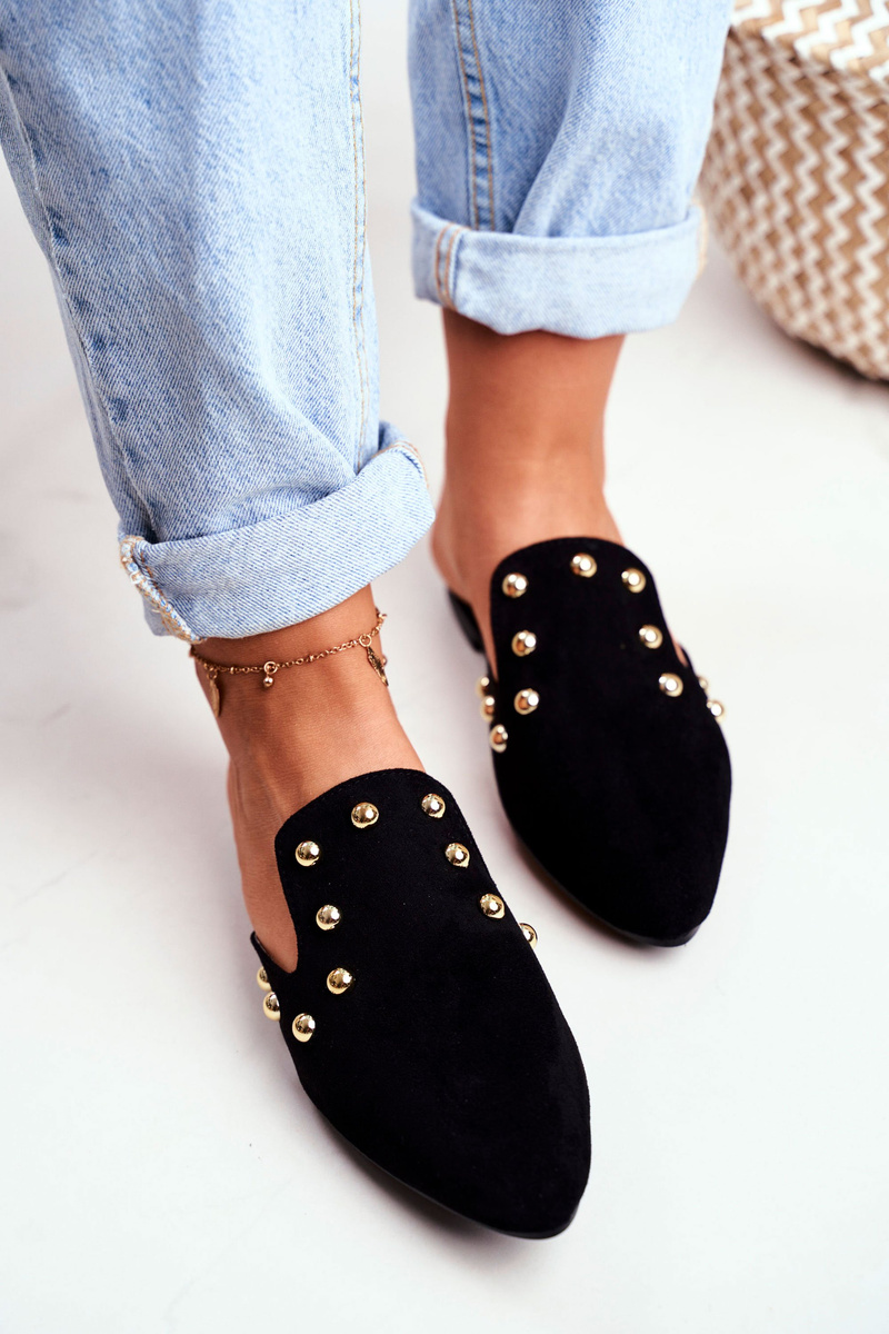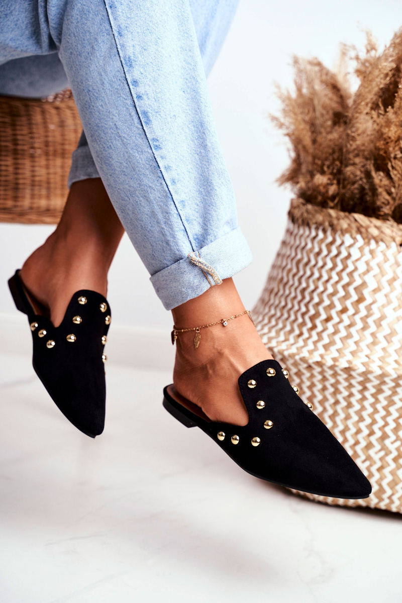 Lu Boo Damskie Klapki Czarne Zamszowe Seniorita