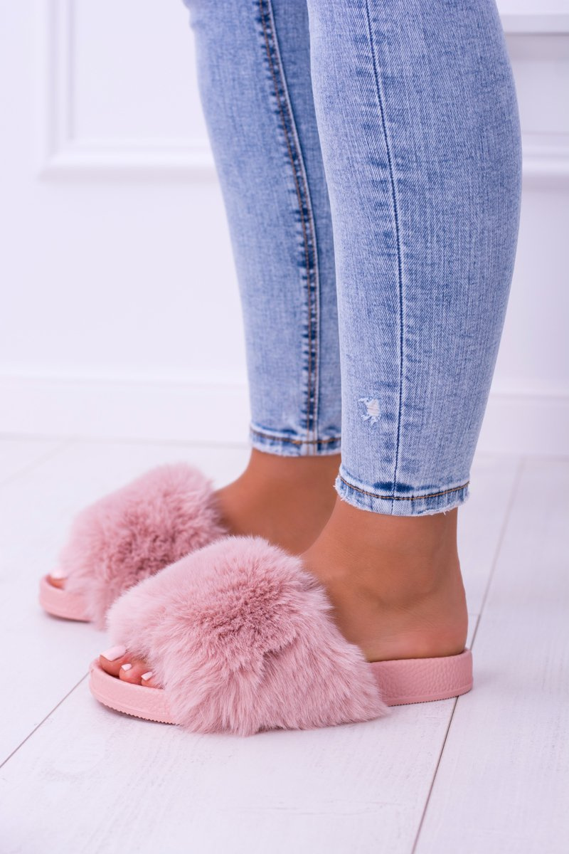 Lu Boo Damskie Klapki Z Futerkiem Różowe Fur XXL