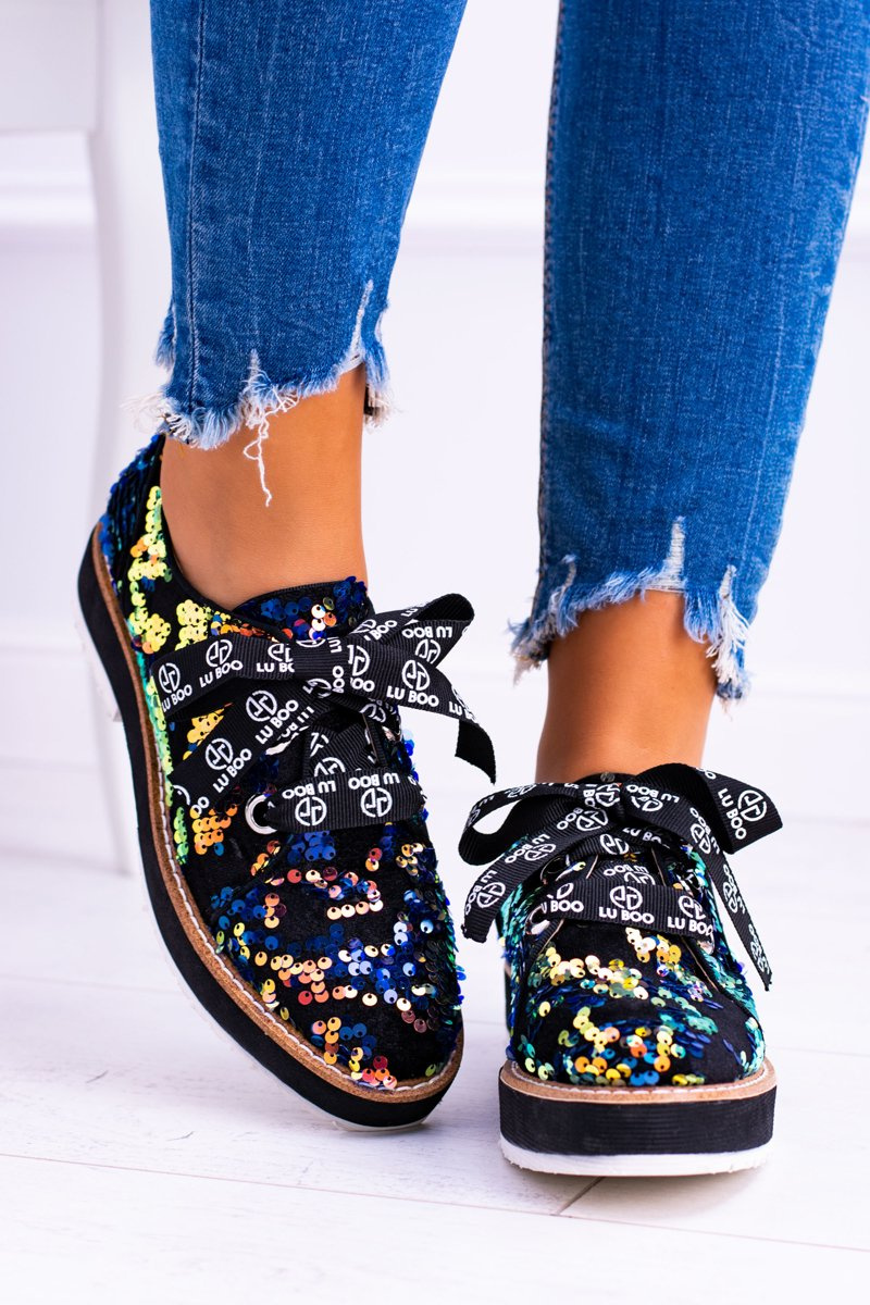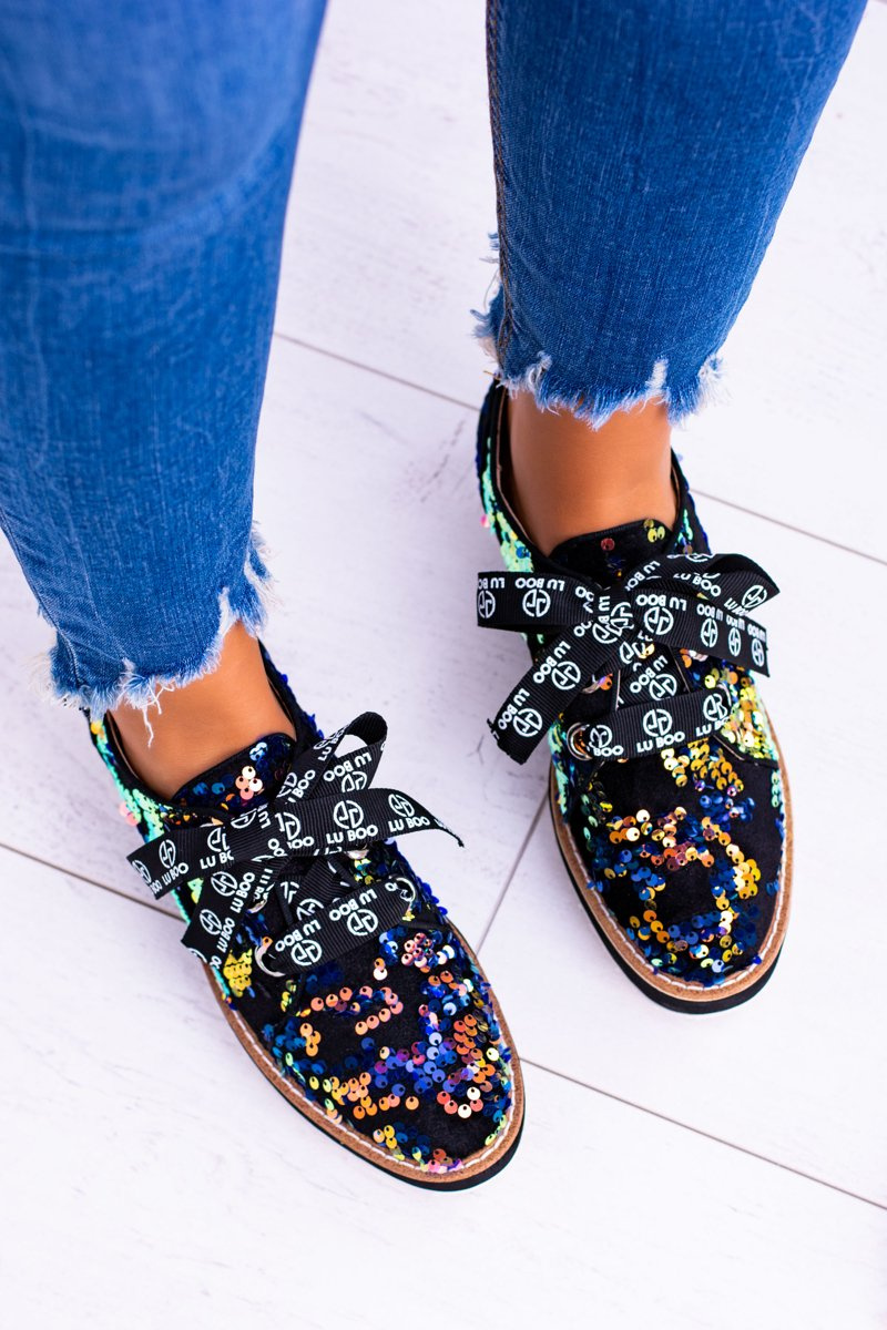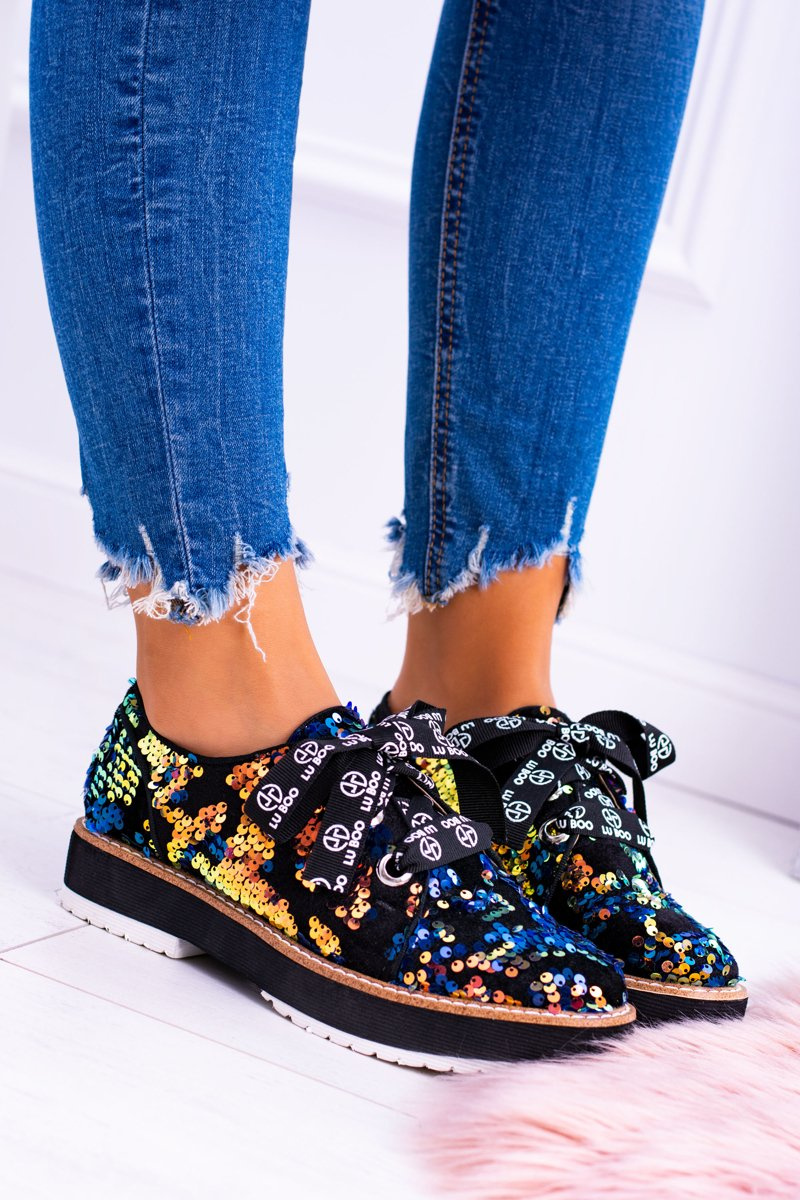 Niebanalny hit od firmy Lu Boo! Niezwykle wygodne, damskie półbuty! Wykonane z niezwykłą dbałością o szczegóły. Dzięki delikatnej wkładce Twoje stopy odpoczną, a ich unikatowy design sprawi, że nie będzie można oderwać od nich oczu. Dodatkową ozdobą są cekiny na całej powierzchni obuwia oraz sznurowanie w postaci wstążki. Nie czekaj dłużej i kup teraz!