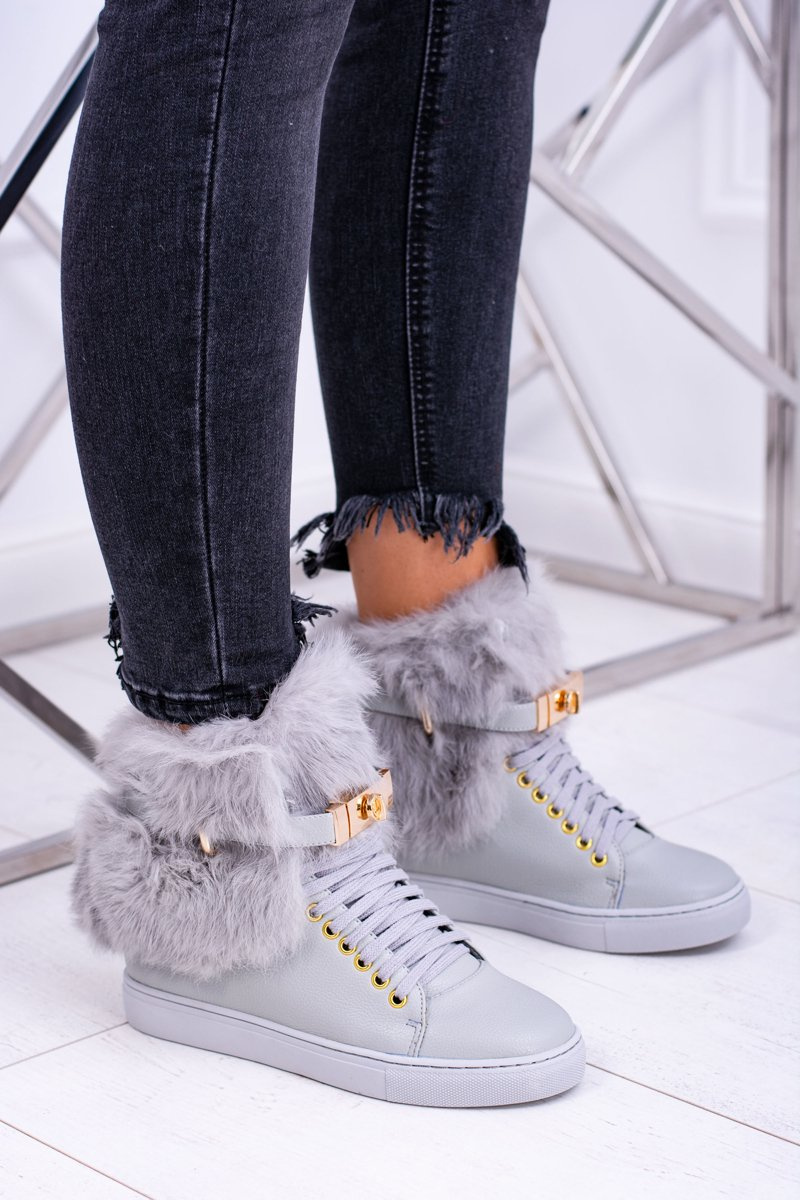 Lu Boo Szare Botki z Naturalnym Futrem Gisele