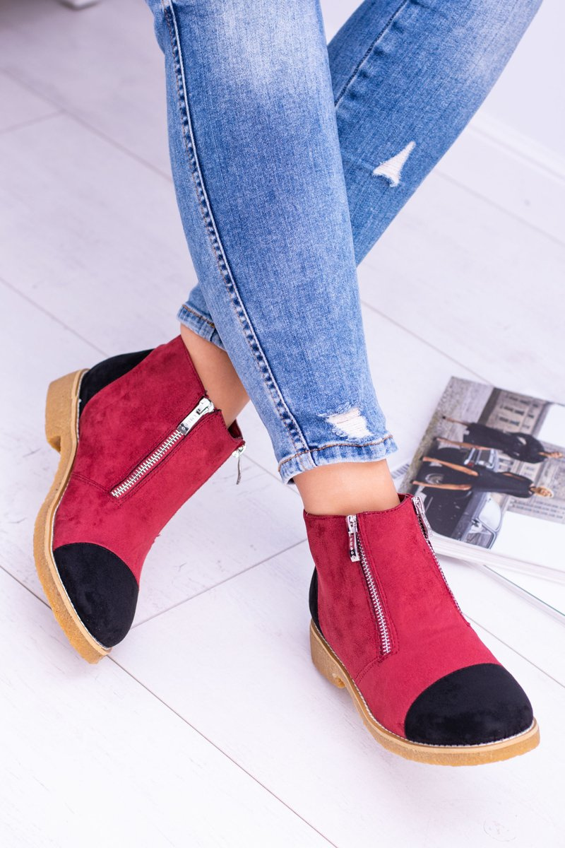 Lu Boo Zamszowe Bordowe Botki Z Suwakami Inez