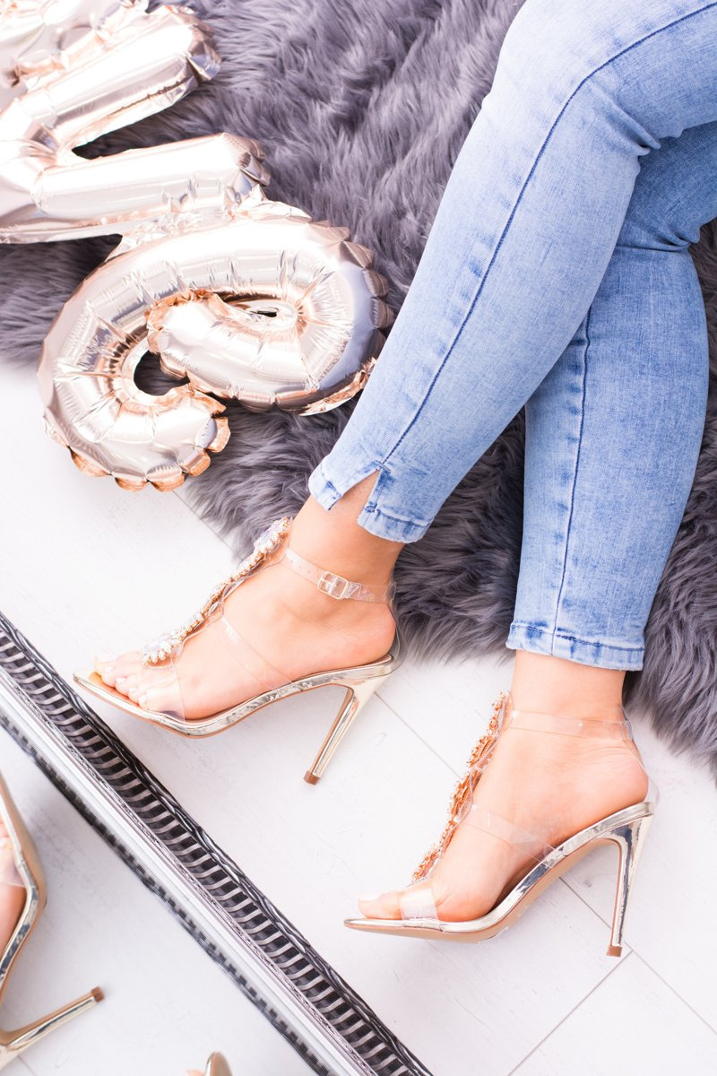 Lu Boo Złote Sandały Na Szpilce Cyrkonie Serenada