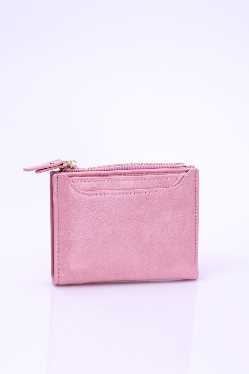 Mały Portfel Damski Pudrowy Róż Złoty Zamek