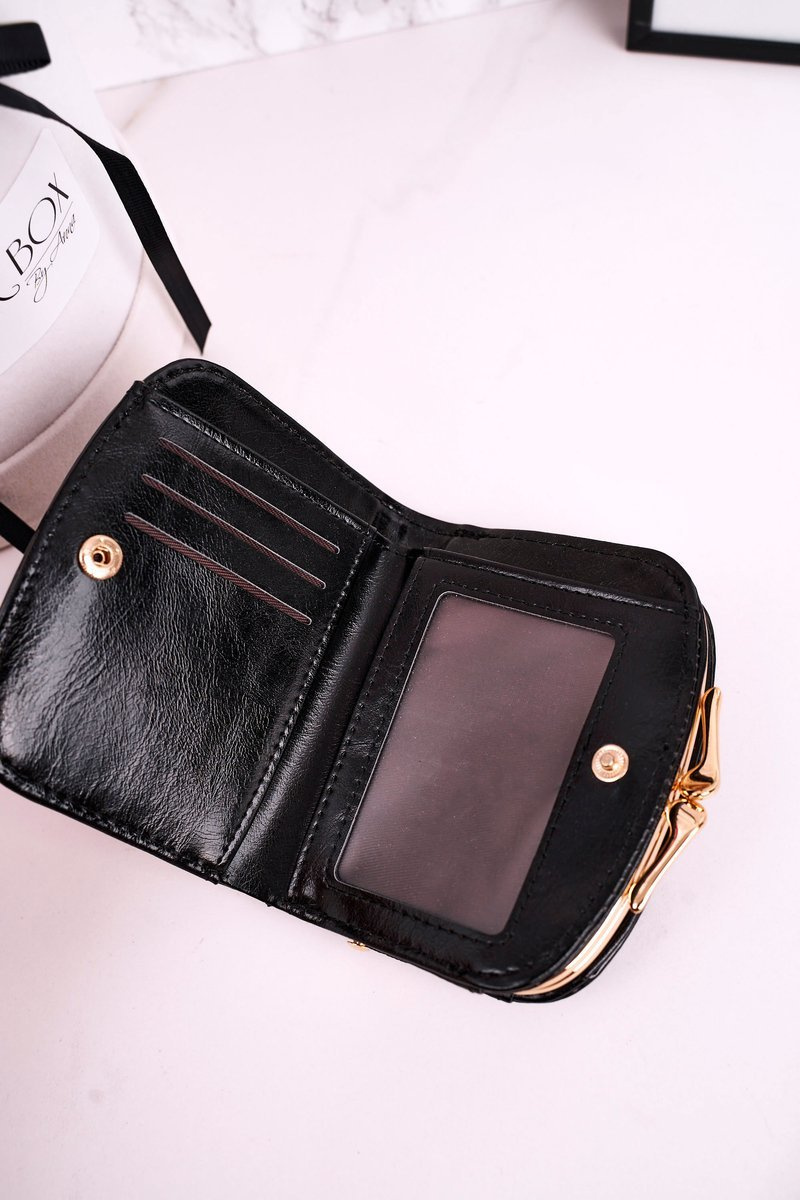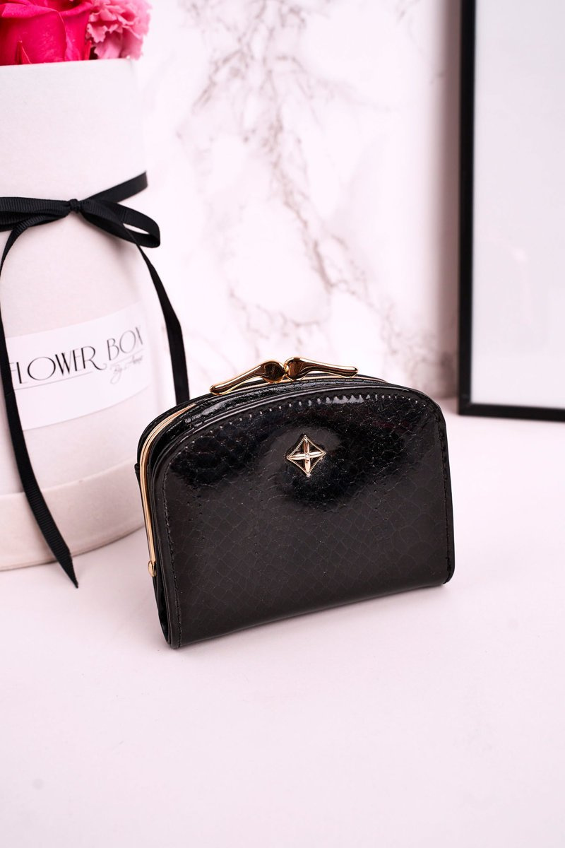 Mały portfel damski zapinany na bigiel. Portfel pomieści bilon, banknoty oraz karty płatnicze. Wykonany ze skóry ekologicznej.