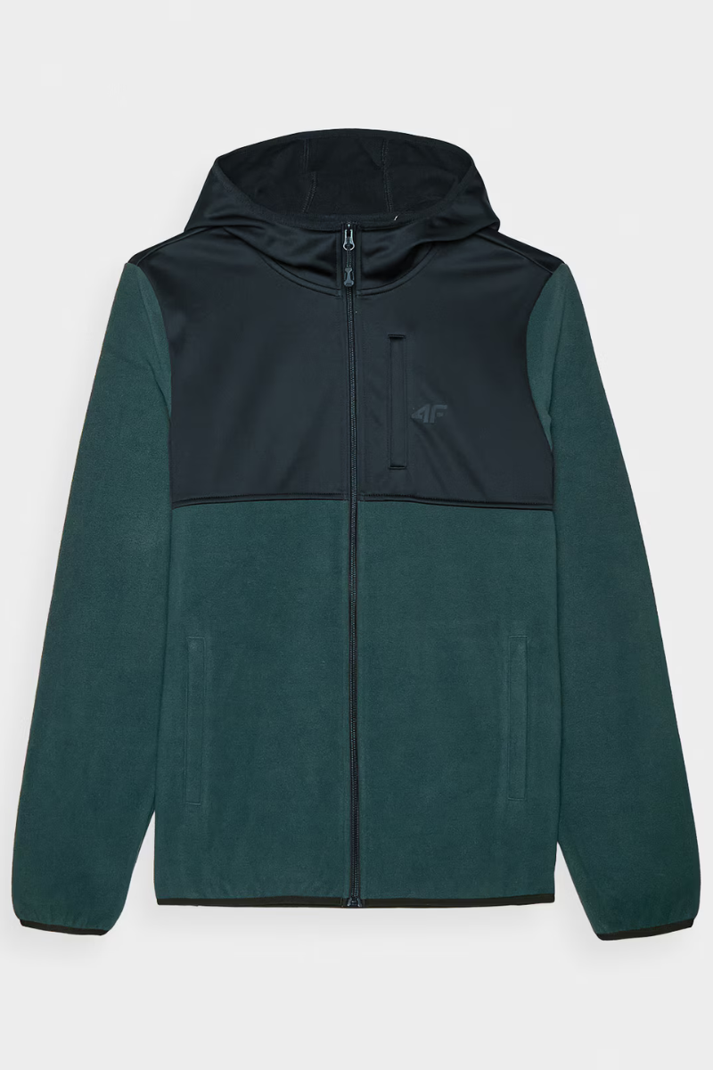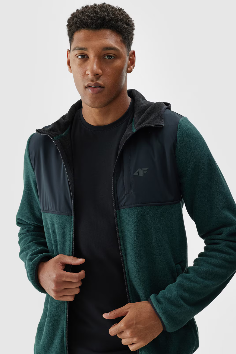 Męski Polar Z Kapturem Regular 4FWAW24TFLEM269-40S Ciemnozielony