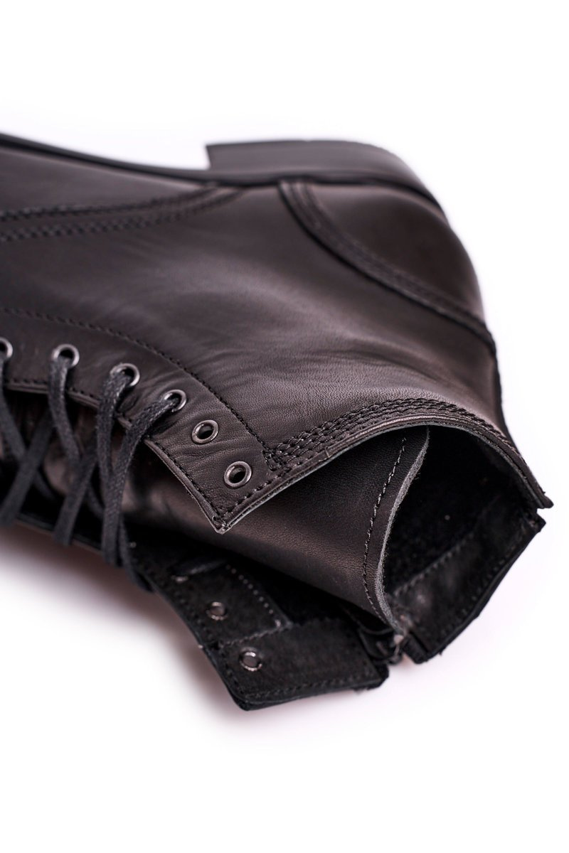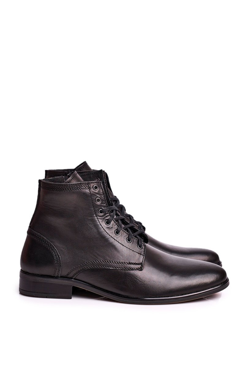 Męskie botki trzewiki skórzane czarne Bruno