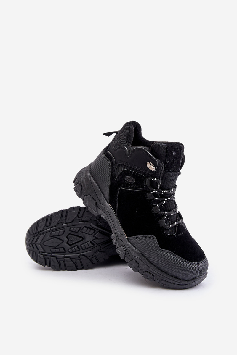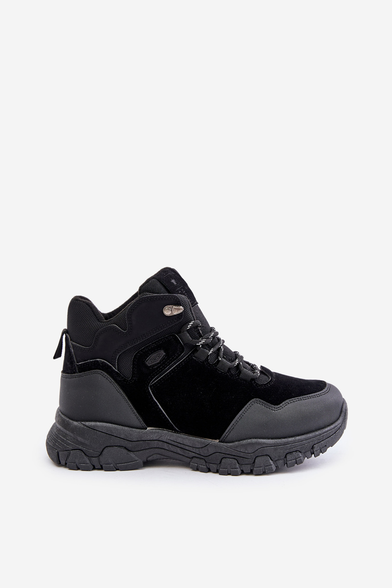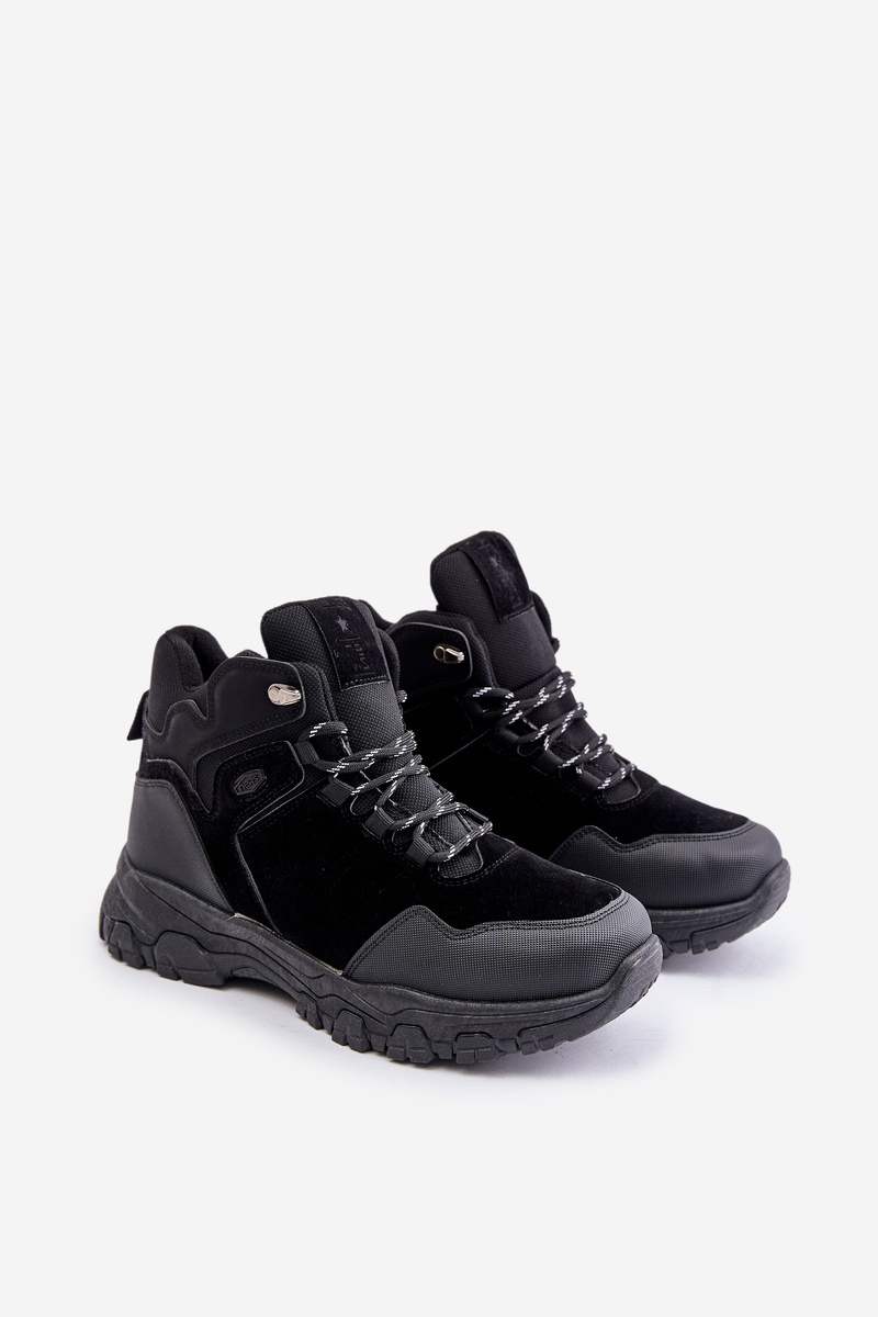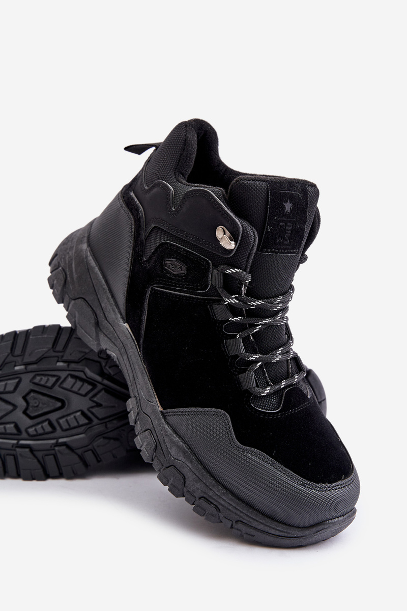 Męskie Ocieplane Buty Trekkingowe Sznurowane Czarne Zerista