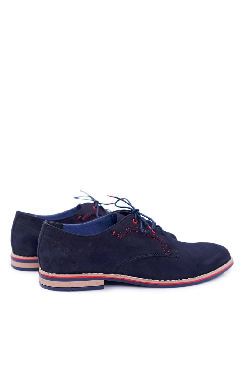 Męskie Półbuty Bednarek Eleganckie Skórzane Nubuk Granatowe Pietro
