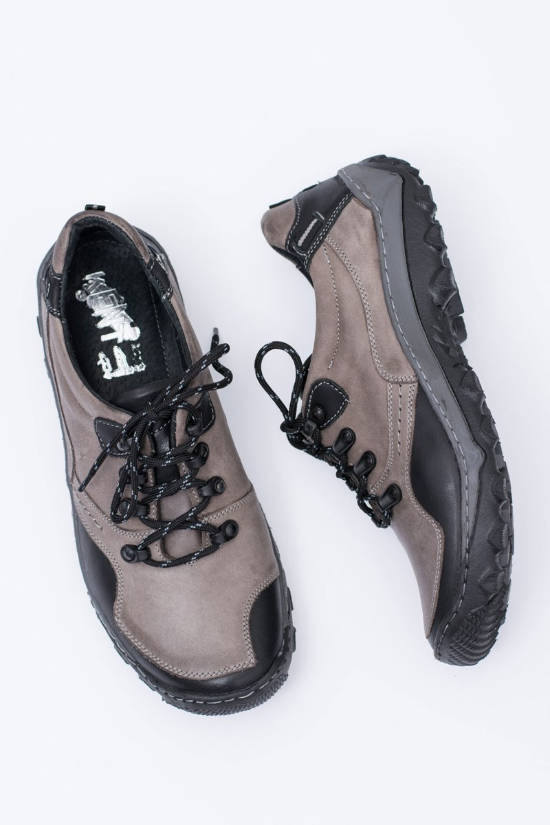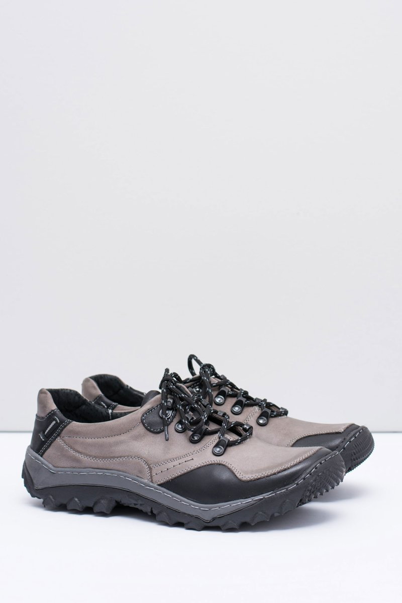 Męskie Skórzane Szare Półbuty Trekkingowe Gretin