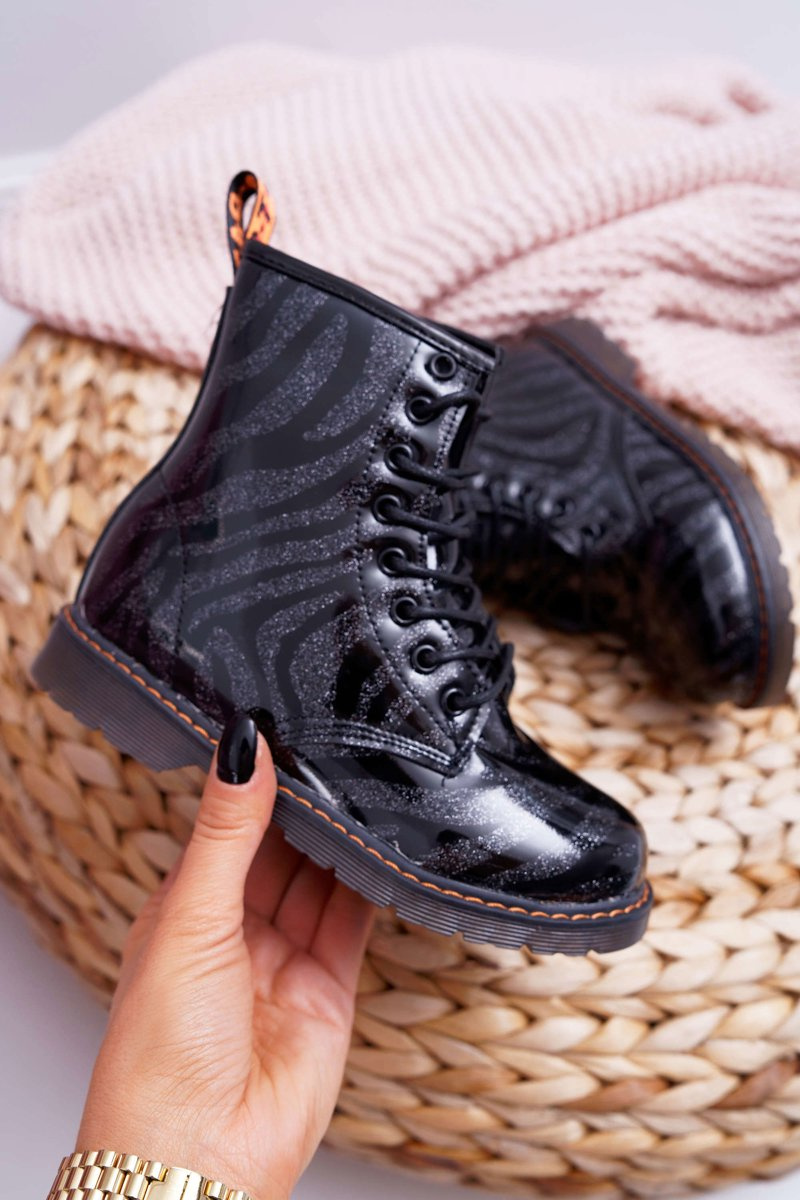 Młodzieżowe Botki Lakierowane z Suwakiem Czarne Omua