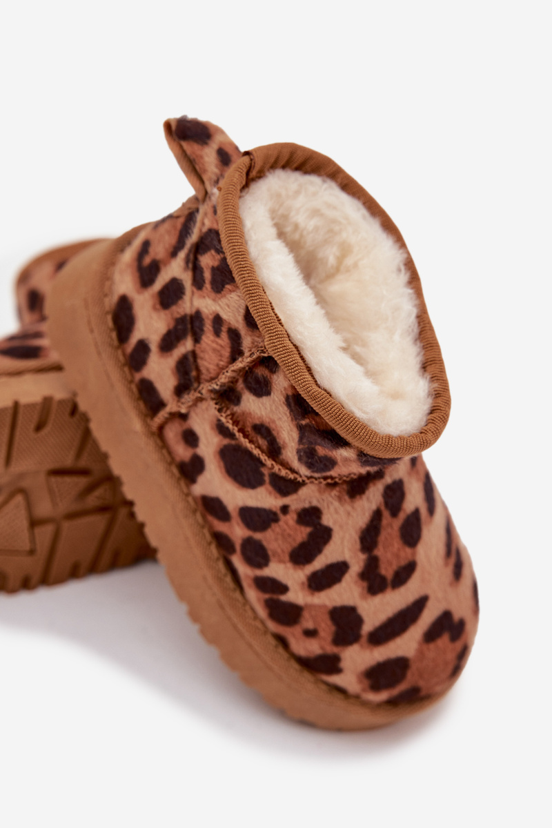 Młodzieżowe Dziecięce Śniegowce Ocieplane Futerkiem Panterka Brązowe Mireya