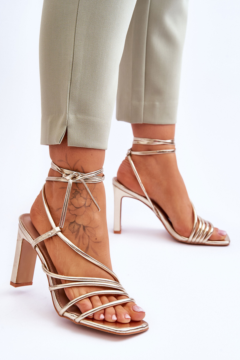 Modne Wiązane Sandały Na Obcasie Złote Tessoro