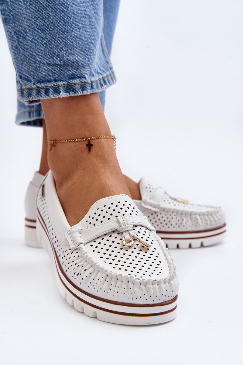 Mokasyny Ażurowe Damskie Białe Twista JH102-9
