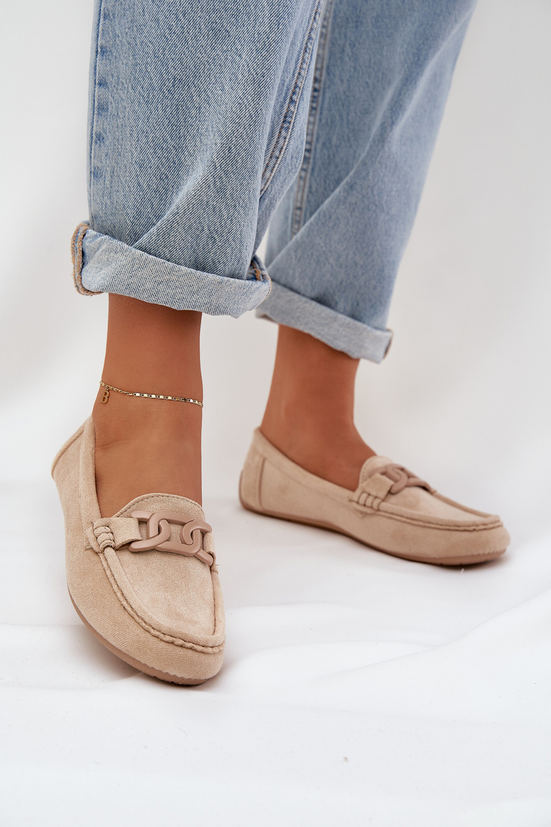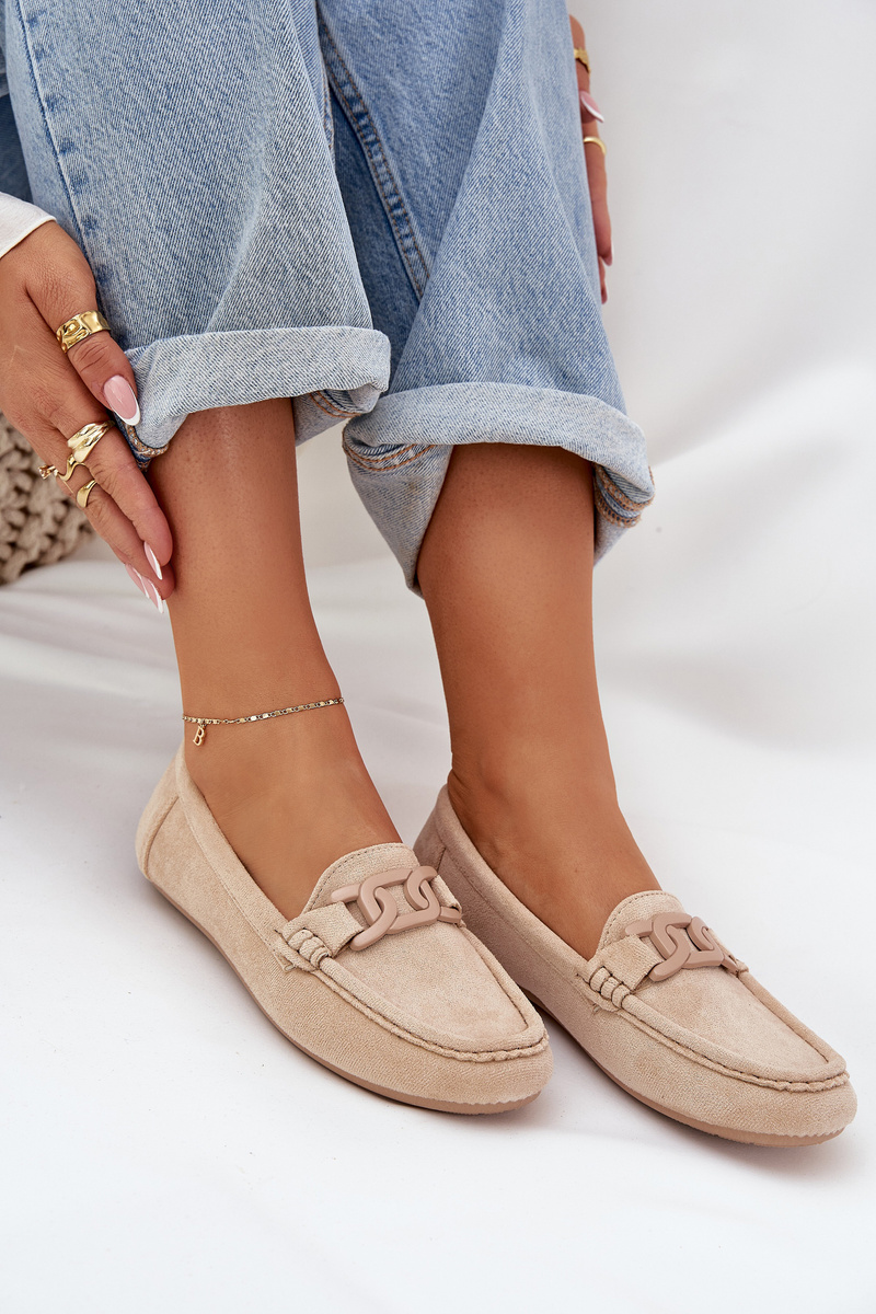 Mokasyny Damskie Eko Zamsz Ozdoba Beżowe Seathra
