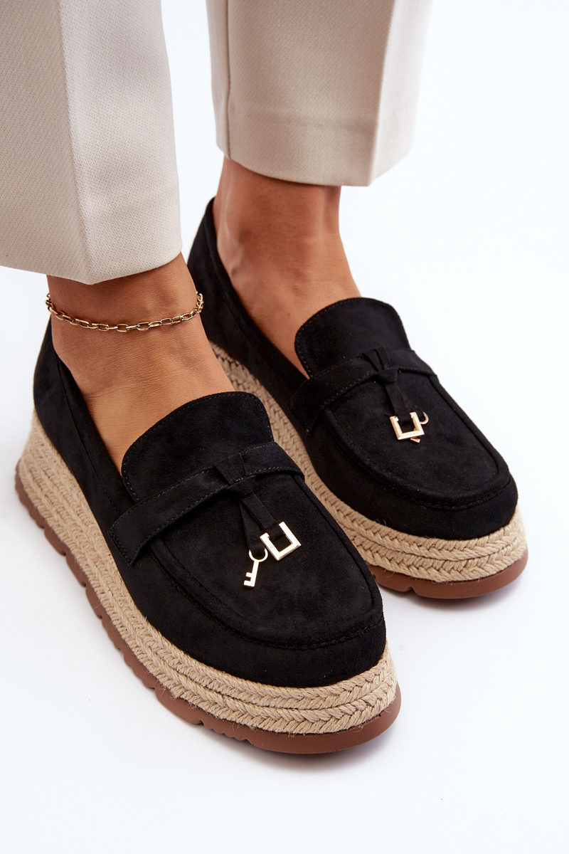 Mokasyny Damskie Eko Zamszowe Pleciona Podeszwa Czarne Torresia C-397