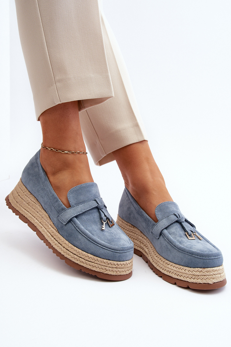 Mokasyny Damskie Eko Zamszowe Pleciona Podeszwa Niebieskie Torresia C-397