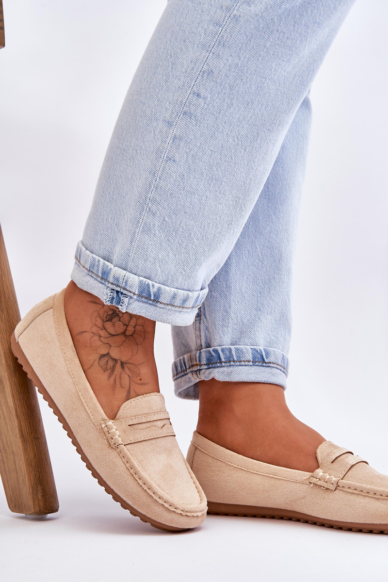 Mokasyny Damskie Klasyczne Zamsz Beżowe Ivana